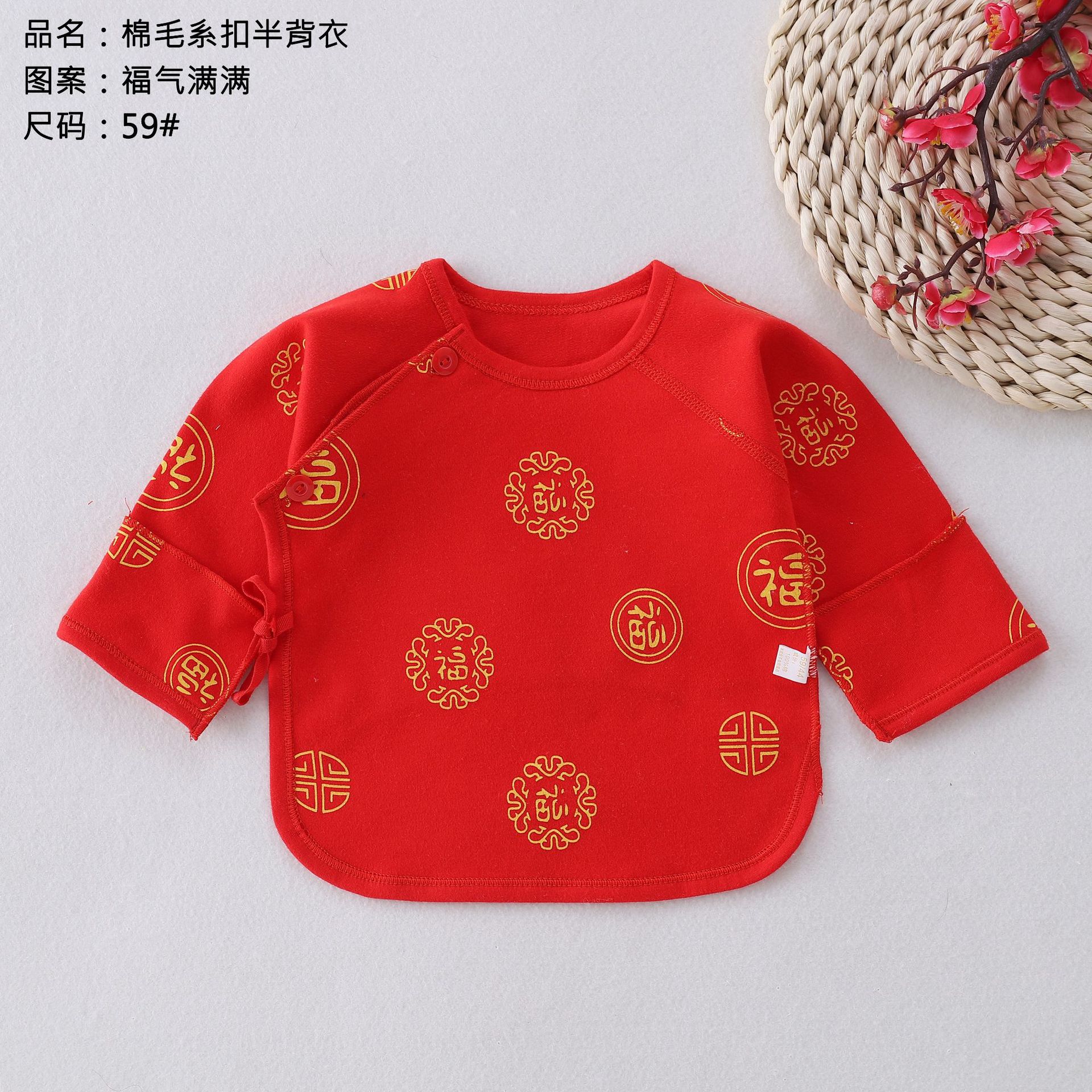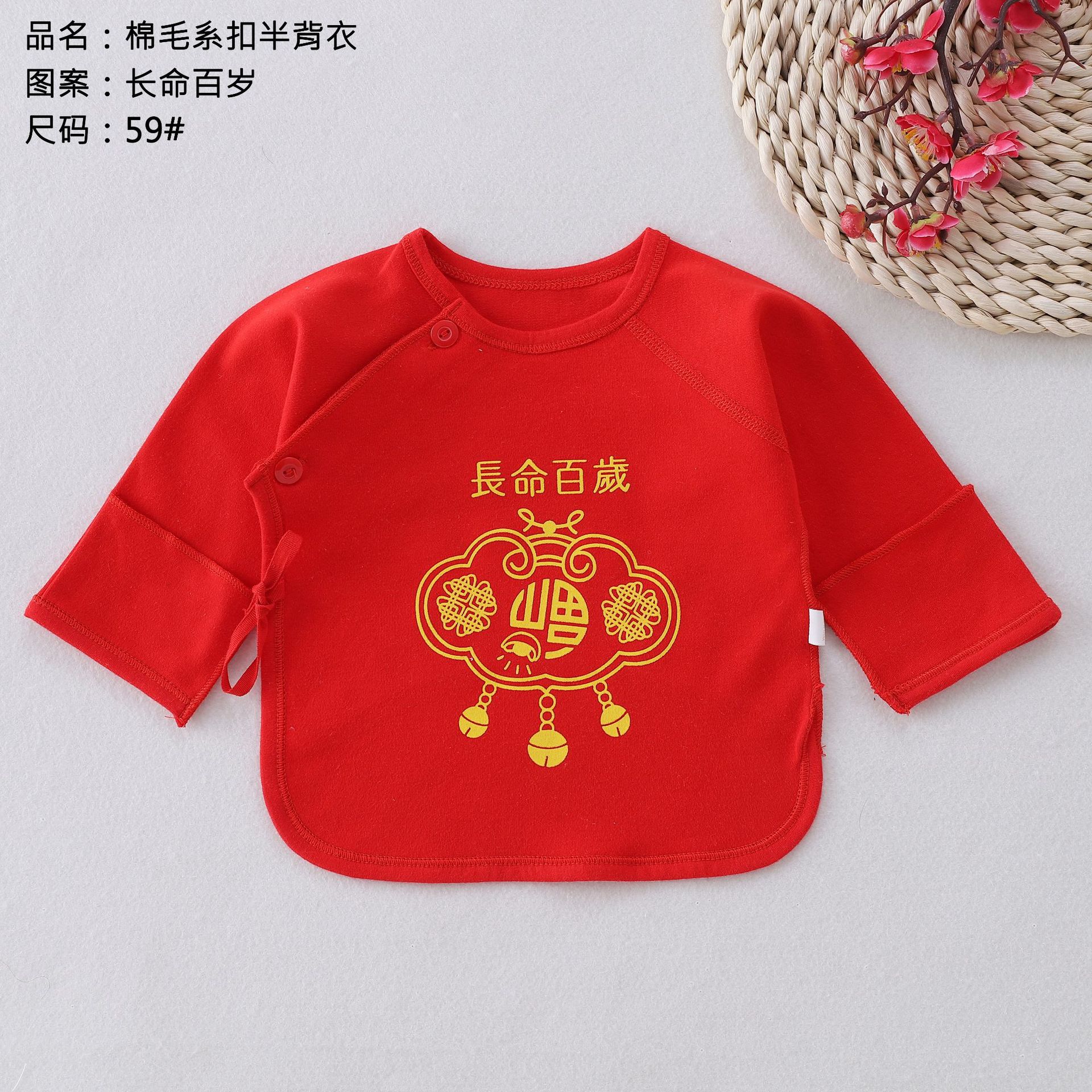 Красная Детская Хлопковая одежда на шнуровке без выцветания, четыре сезона, одежда без костей, топ для новорожденных, монах