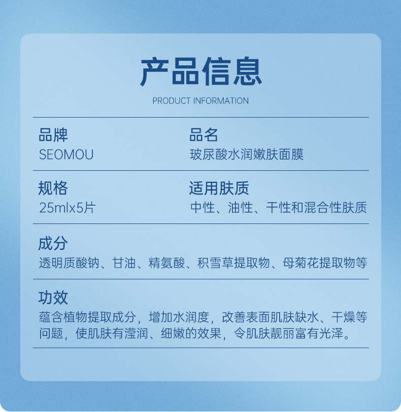 Маска для лица с леденцовой сывороткой с гиалуроновой кислотой [лист]; Увлажняющая маска с гиалуроновой кислотой (листовая); Ниацинамидная маска (листовая); Омолаживающая маска Shi Tiao Yellow Water Lily Stay Up Late (листовая); Освежающая и гладкая маска для лица Shitu Green Tea (листовая); Увлажняющая и омолаживающая маска Resurrection Grass (листовая); Омолаживающая и увлажняющая маска Shitou Natto (листовая); Полипептидная протеиновая укрепляющая и лифтинг-маска (листовая); Увлажняющая ледяная маска с фуллереном (лист); Маска с ретинолом Shitu (листовая); Маска из огурца и центеллы азиатской [листовой пакет]; Шелковая маска для омоложения кожи с экстрактом ледяной кожи и арбутином (лист); Экстракт ледяной кожи, ниацинамид, увлажняющая и полупрозрачная шелковая маска (лист); Увлажняющая шелковая маска с экстрактом ледяной кожи и жемчужной гиалуроновой кислотой (лист); Увлажняющая и увлажняющая маска с медом Boquanyun (листовая); Увлажняющая маска Boquanyun Olive (листовая); Свежая и увлажняющая маска для лица Boquanyun Red Pomegranate (листовая); Увлажняющая и разглаживающая маска Boquanyun Cucumber (листовая); Увлажняющая маска Boquanyun Blueberry Beauty (листовая); Увлажняющая косметическая маска Boquanyun Aloe Vera (листовая)