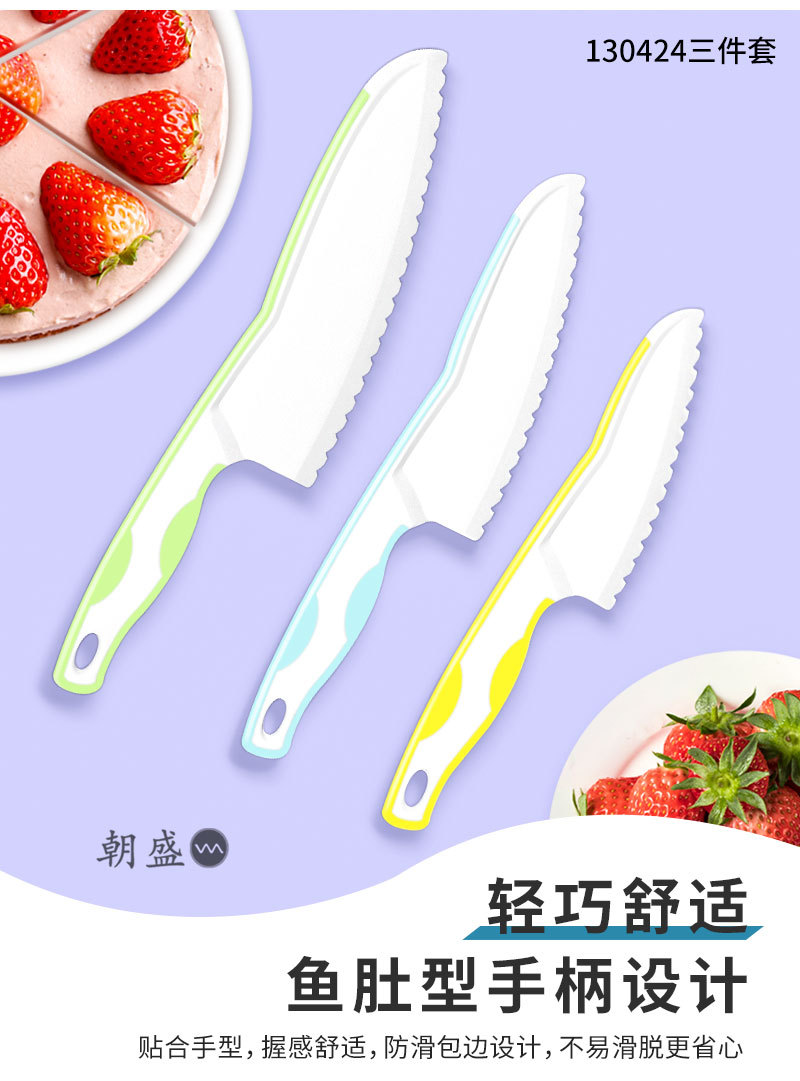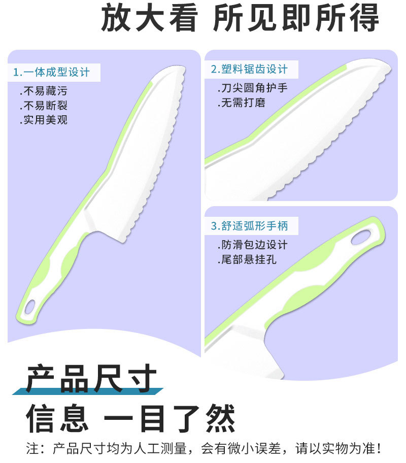 Детский пластиковый нож для фруктов Зубчатый нож для хлеба Нож для торта ко дню рождения Дыня Игрушечный нож для фруктов и овощей Нож для раннего обучения для детского сада