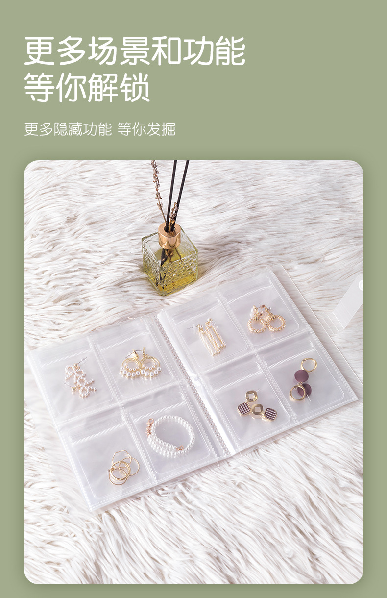 Ювелирные изделия, украшения, серьги, серьги, прозрачная книга для хранения, сумка для хранения, нефритовая нить, антиокислительная сумка на молнии.