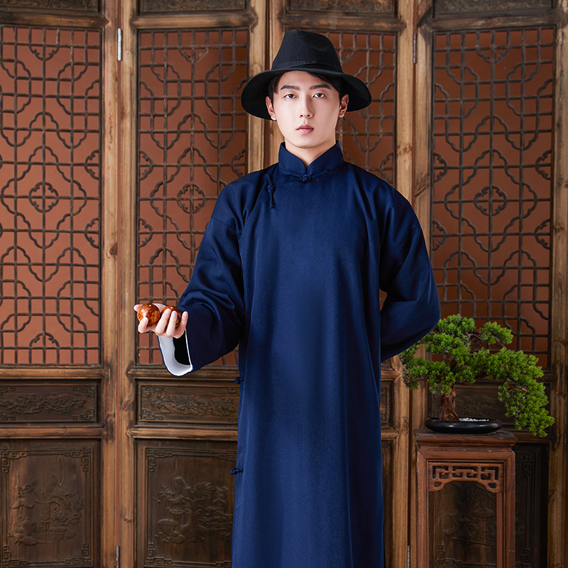 Длинная рубашка мужская Республика Китай мужской жилет без глажки Китайская одежда лучшего человека ретро китайский стиль платье перекрестные разговоры одежда для выступлений