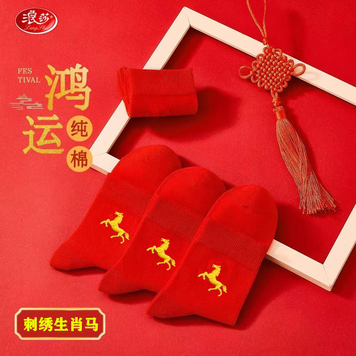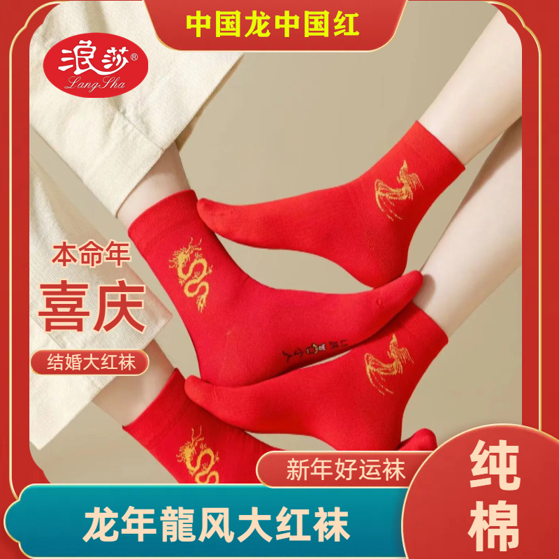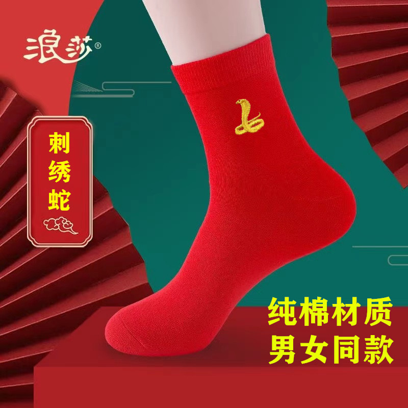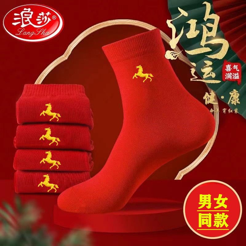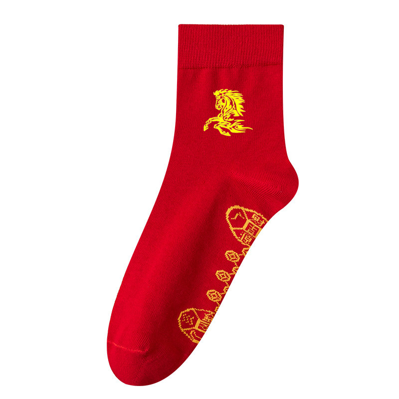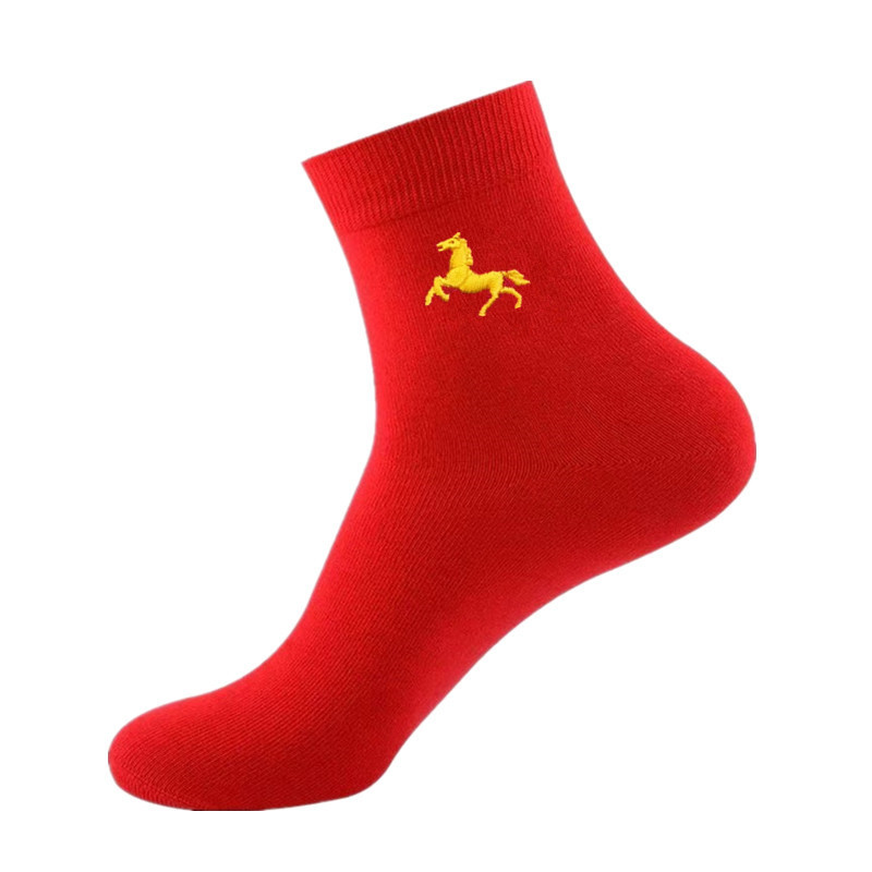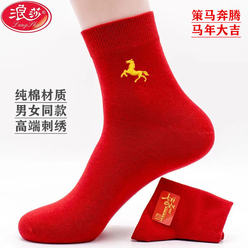 Новые красные носки Langsha из чистого хлопка на год Лошади (Год Зодиака), свадебные, новогодние, женские, унисекс, парные, в стиле знака зодиака Лошадь