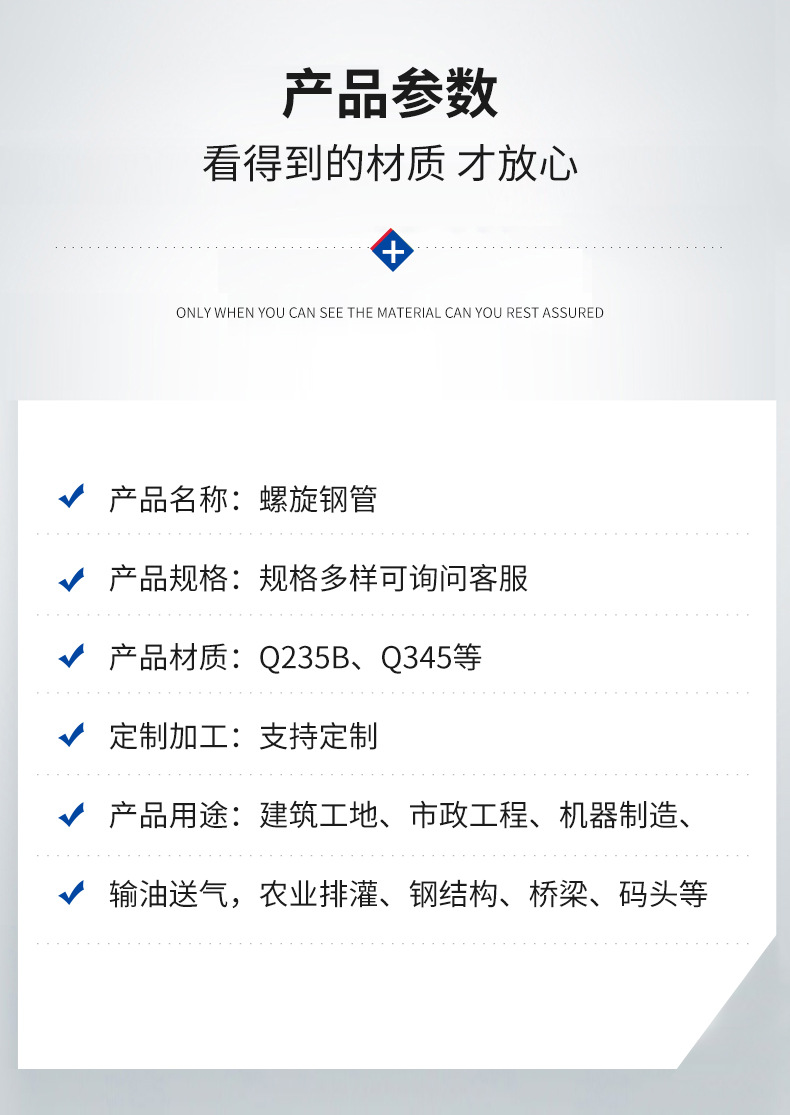 螺旋管主要应用于自来水工程、石化工业、化学工业、电力工业、农业灌溉、城市建设,是我国开发的二十个重点产品之一。作液体输送用:给水、排水,污水处理工程,输油,海洋输水。作气体输送用:煤气、蒸气、液化石油气。作结构用:作打桩管、作桥梁;码头、道路、建筑结构用管,海洋打桩管等。