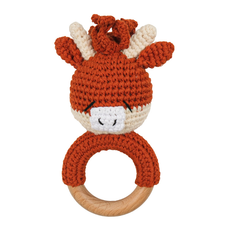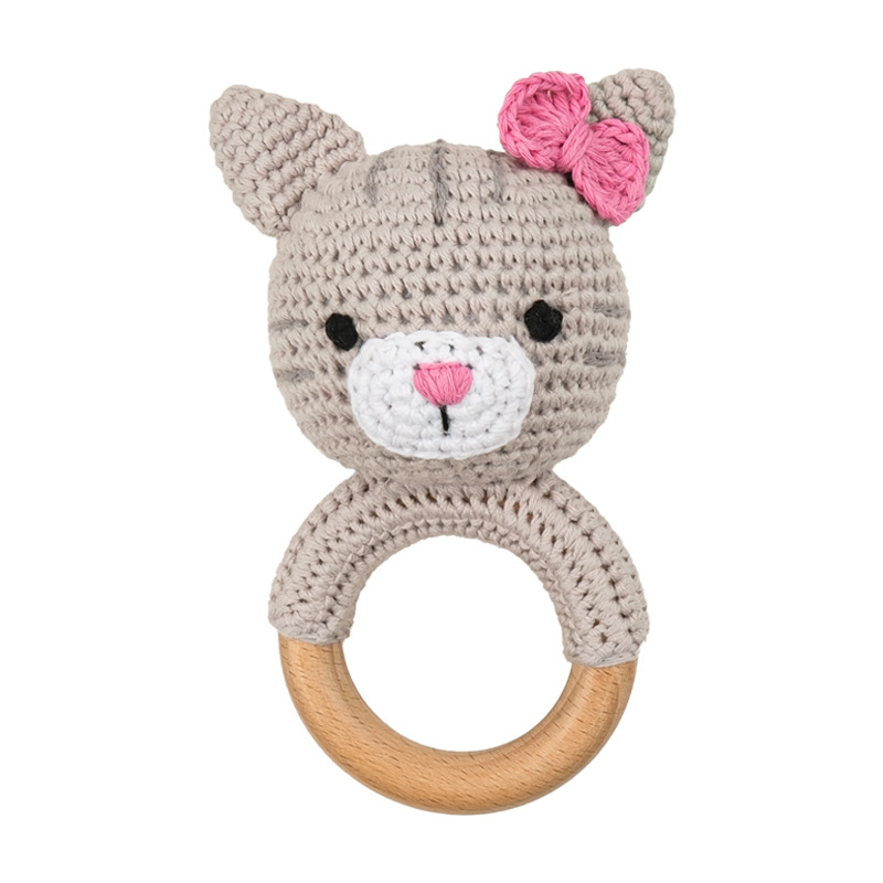 Вязаные вручную погремушки-животные для малышей, вязаные куклы-мультяшки, успокаивающие жевательные игрушки для младенцев