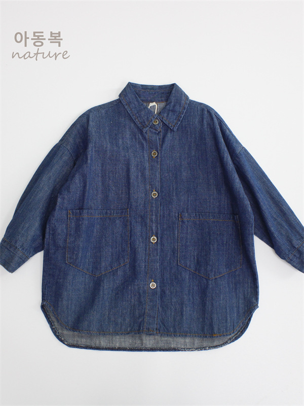 Новые детские рубашки, осенние джинсовые кардиганы для мальчиков, свободные рубашки средней длины в корейском стиле для девочек, универсальные рубашки с отложным воротником оптом