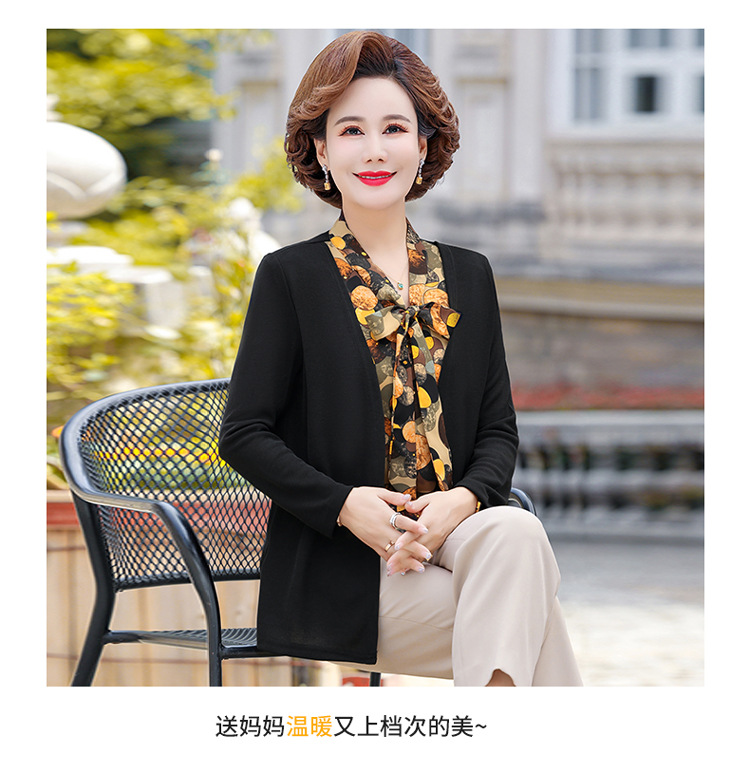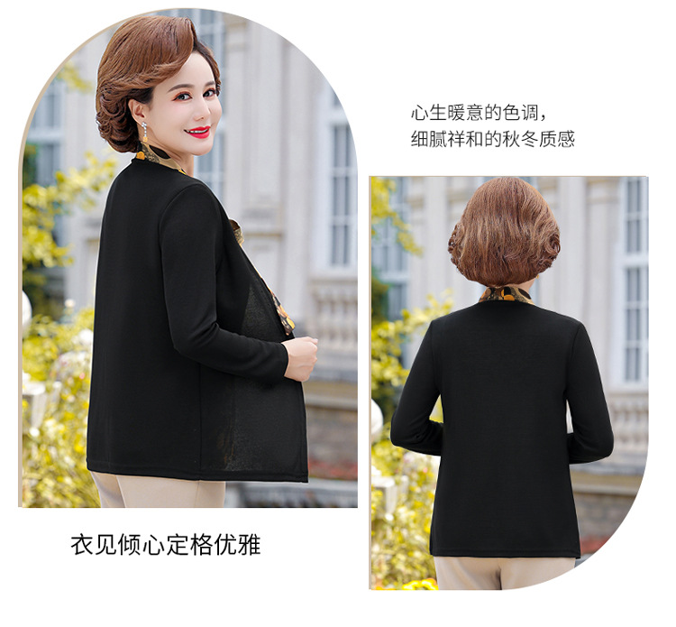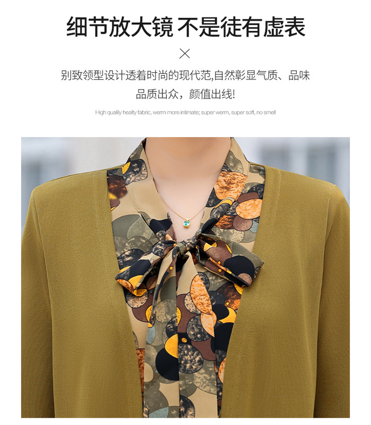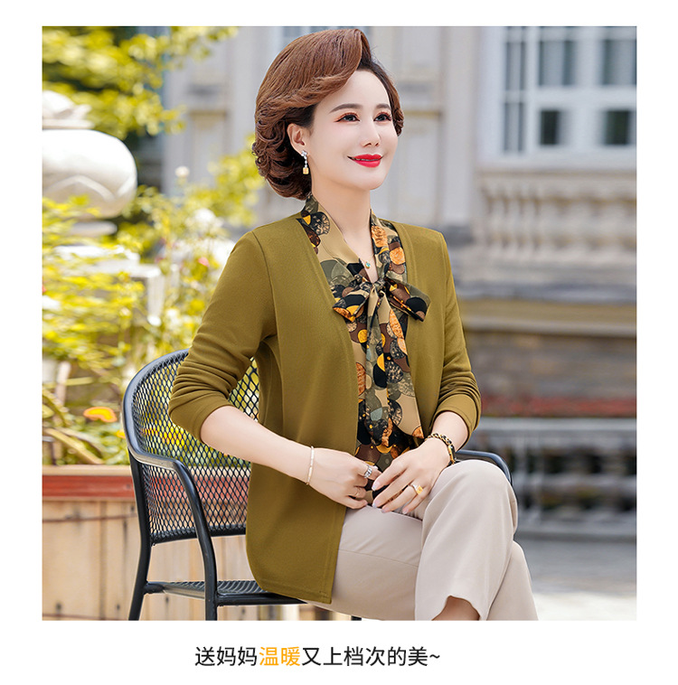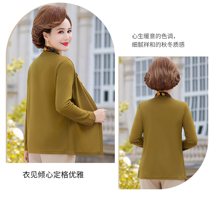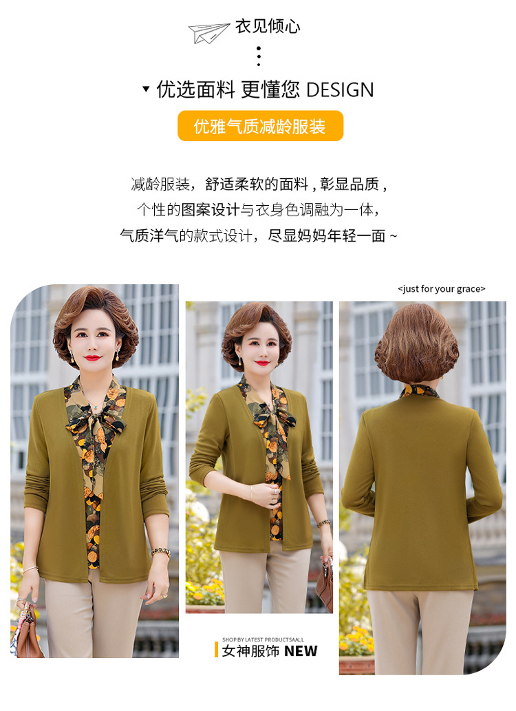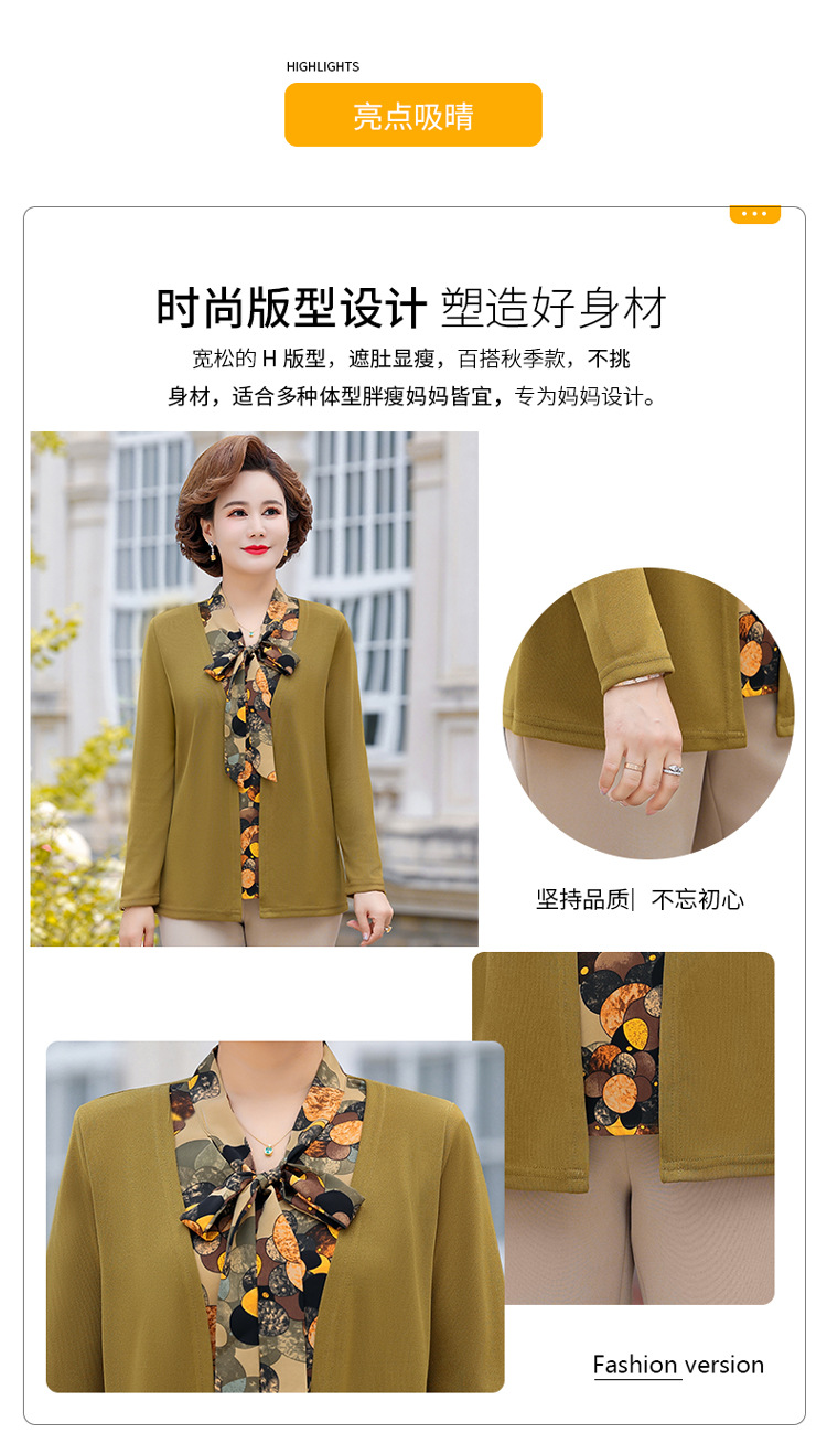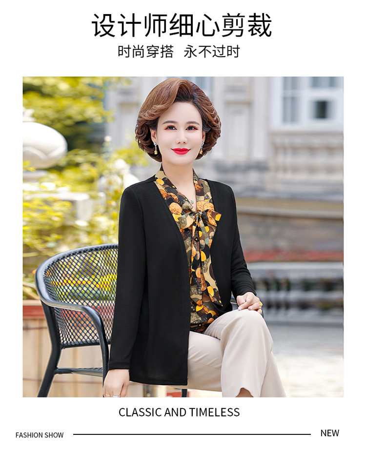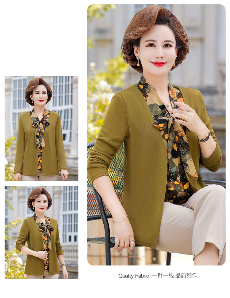 Весенняя футболка с длинными рукавами для мамы, трикотаж для женщин среднего и пожилого возраста, галстук-бабочка, искусственный верх из двух частей.