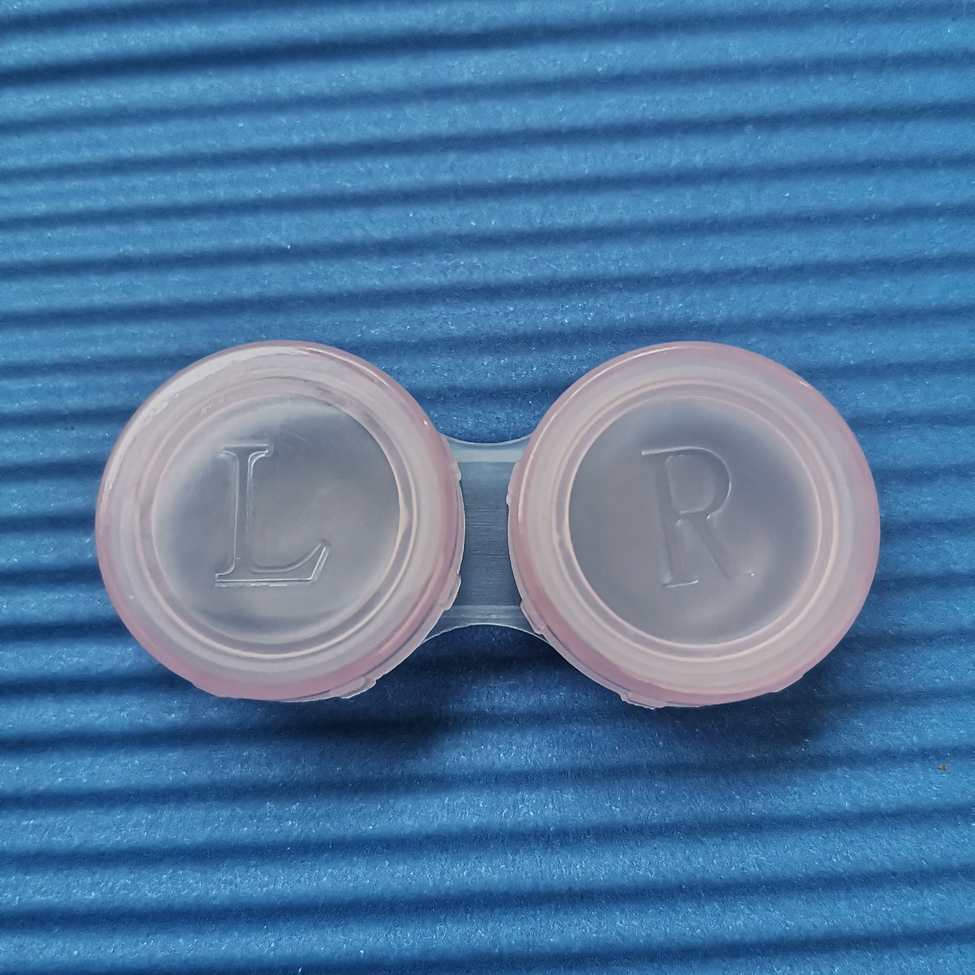⒉双联盒注入一层保存液后、装存镜片(注意镜片放入盒内,请勿放在双联盒边缘)拧紧盒盖.