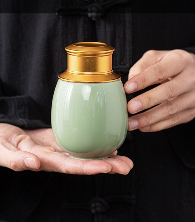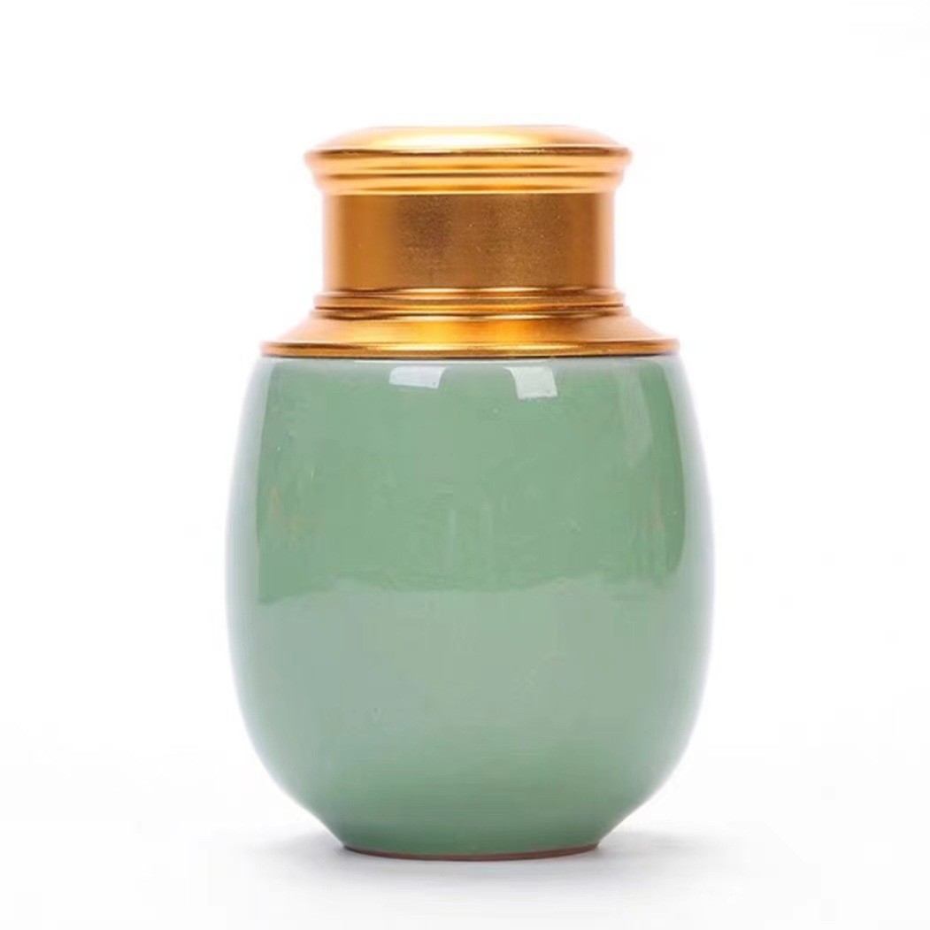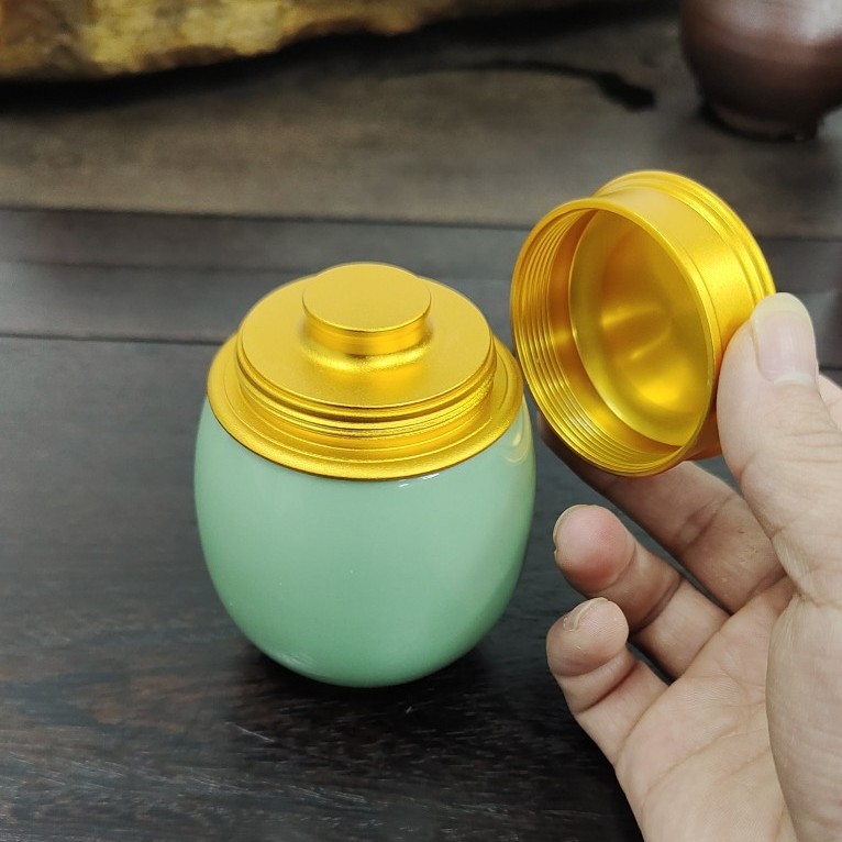 Маленькая чайная банка из селадона с двойной металлической крышкой, с возможностью нанесения рисунка дендробиума и офиопогона, вакуумная банка, емкость для ароматических порошков и лекарственных трав.