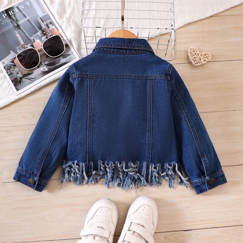 Новая джинсовая куртка для девочек 2025 года, осенняя куртка в корейском стиле с бахромой, универсальный модный топ