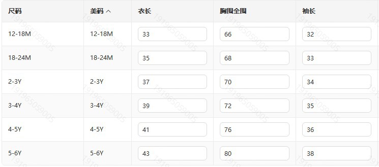 12/18M; 18/24M; 2/3Т; 3/4T; 4/5Т; 5/6Т