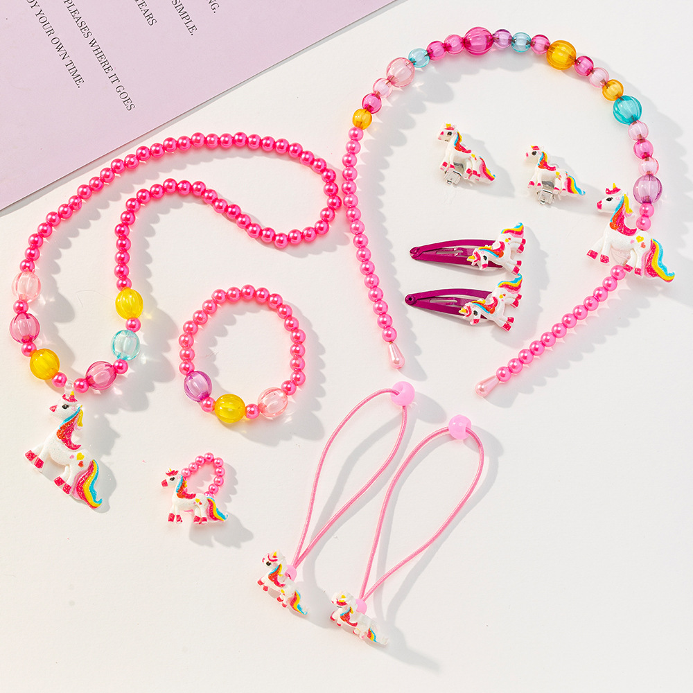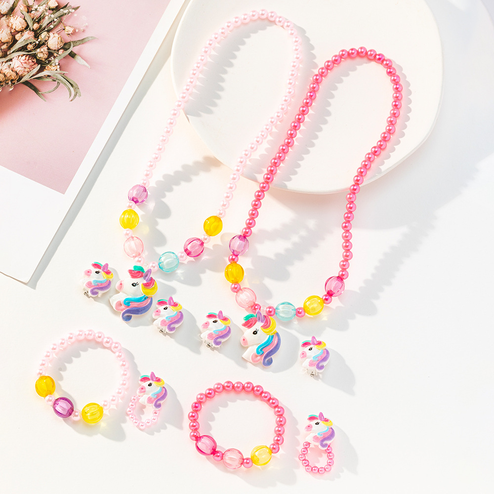 Детский мультяшный браслет из смолы с единорогом, костюм из четырех частей, серьги-кольца, цветочный костюм для девочек, оптовая продажа