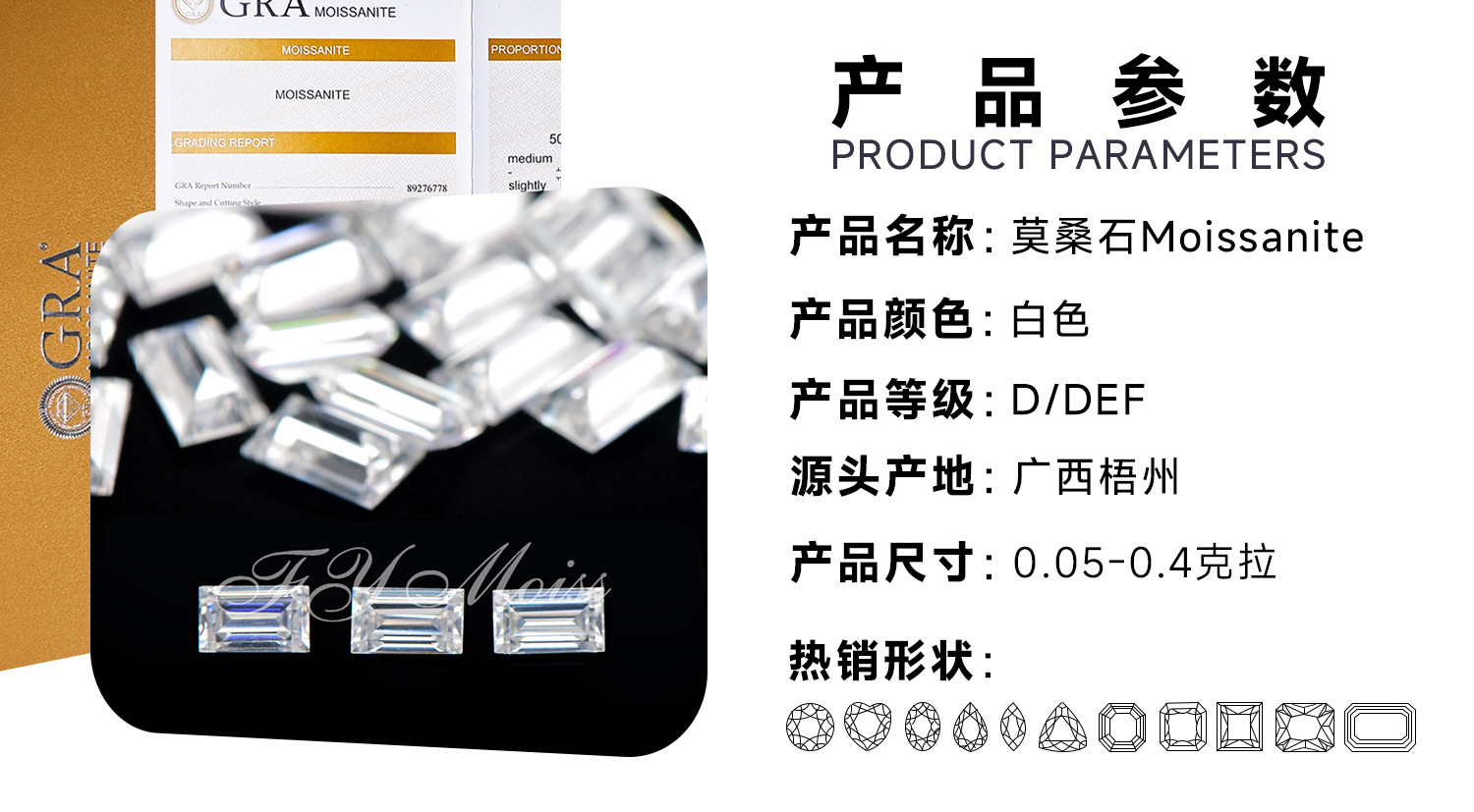 Маленький прямоугольный муассанит D-цвета (DE-цвета) 0,05-0,4 карата из Учжоу, можно использовать как камень для ювелирных изделий.
