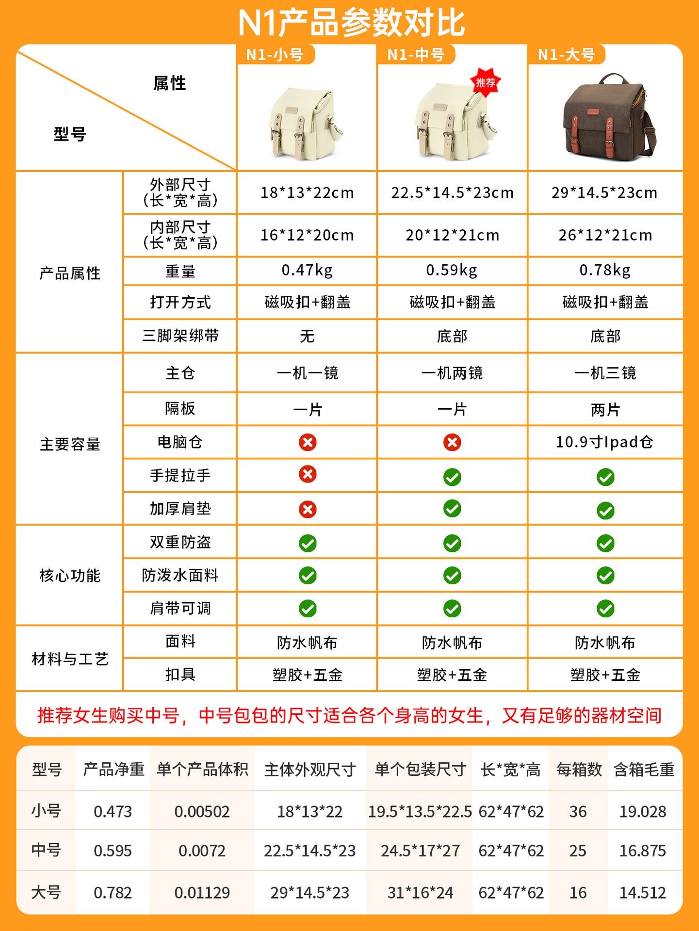 CADeN卡登单肩帆布摄影包 便携旅行微单包日系休闲复古单反相机包