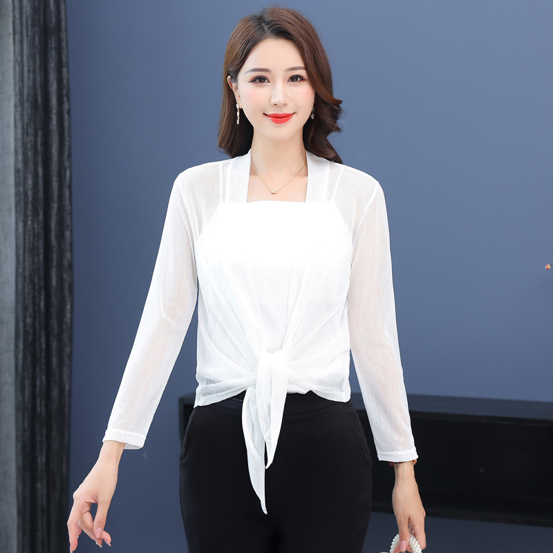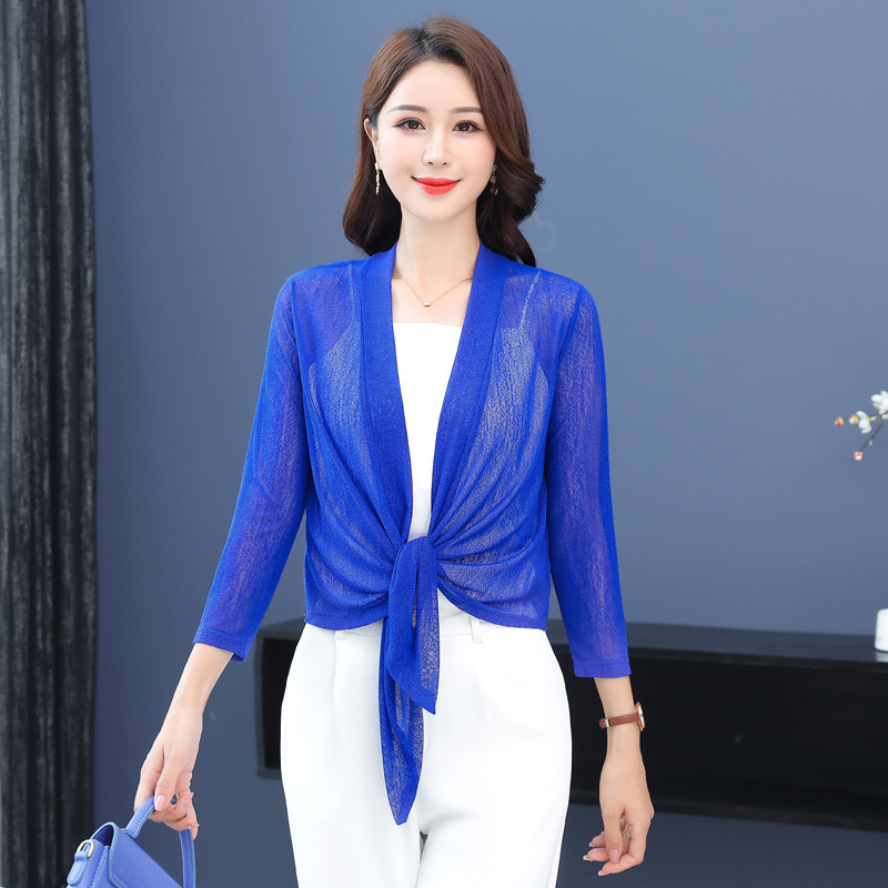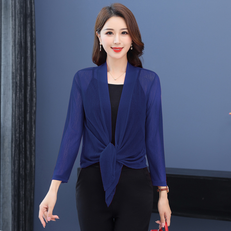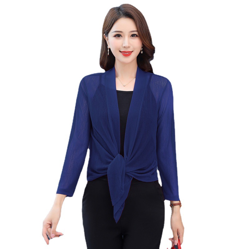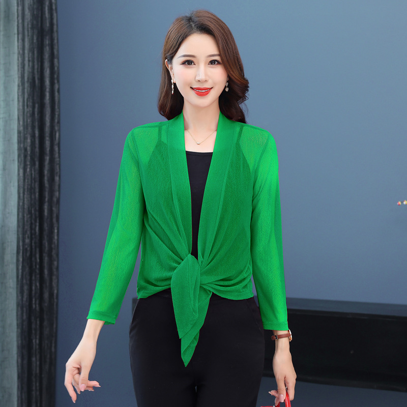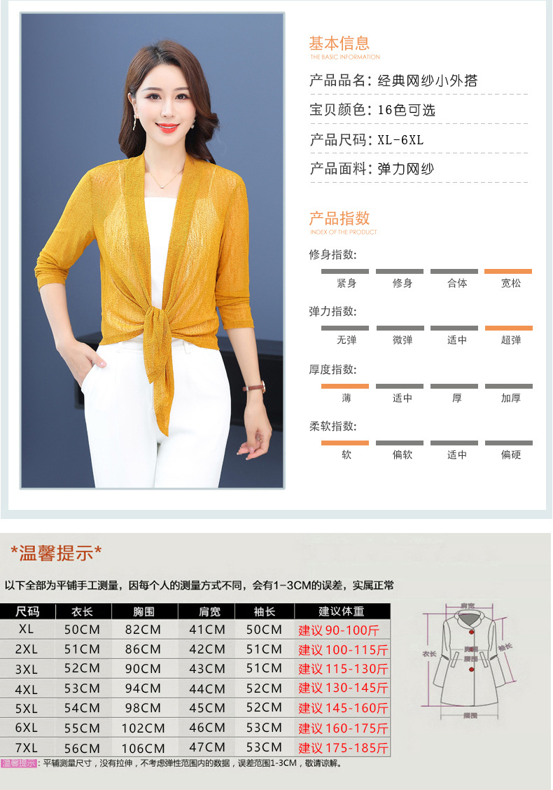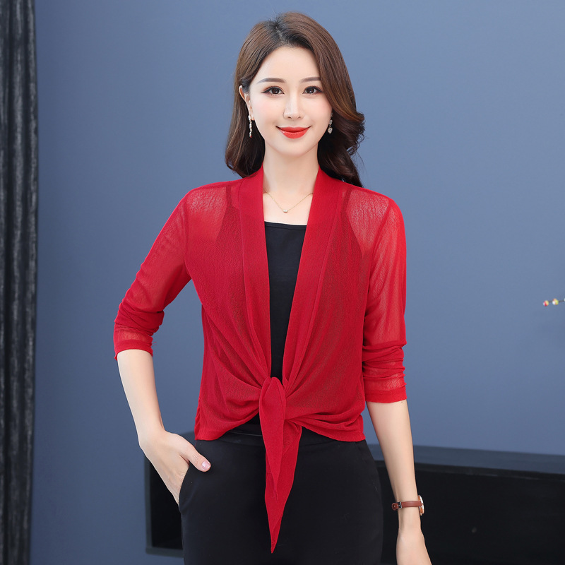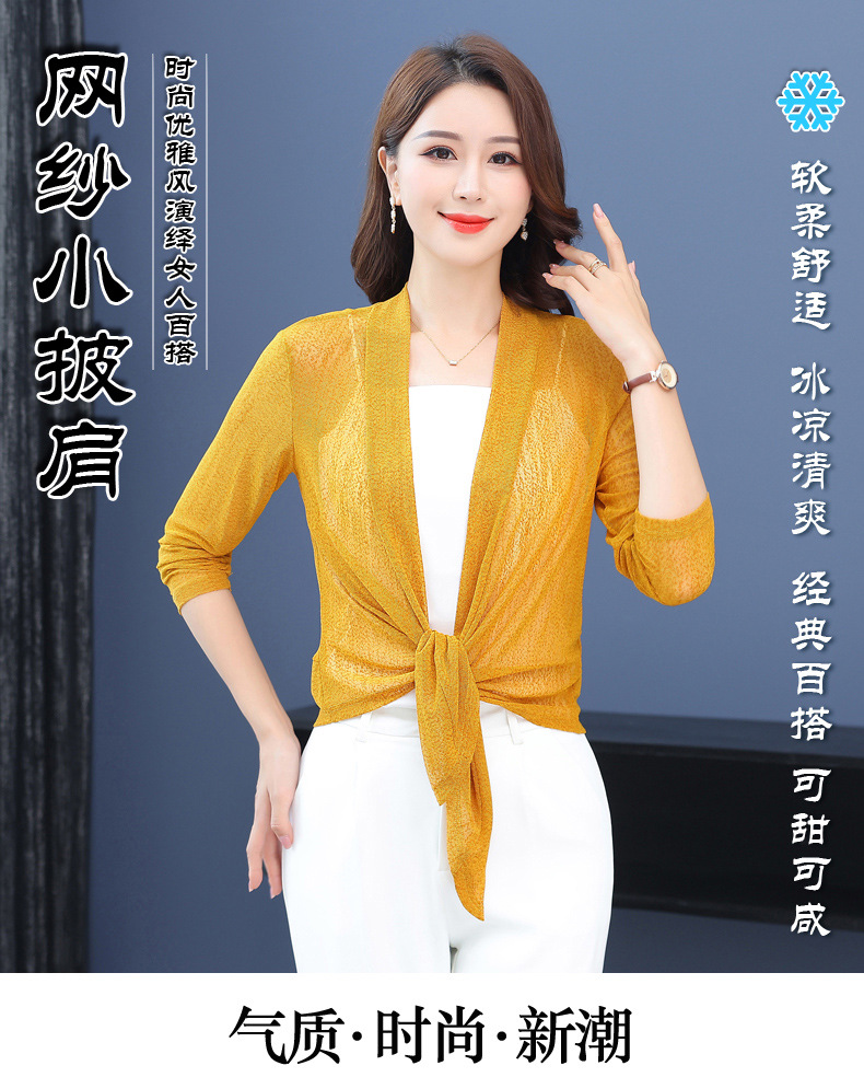 Летний кардиган Fudaiyi 2260 для сочетания с платьями, стильный сетчатый кардиган для женщин среднего возраста, эластичный.