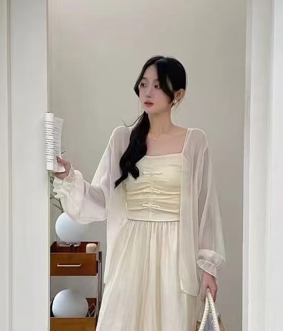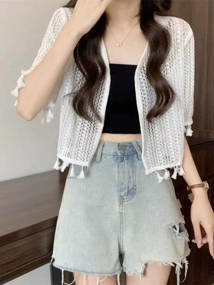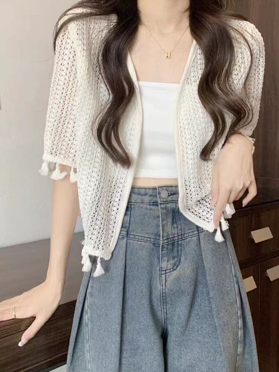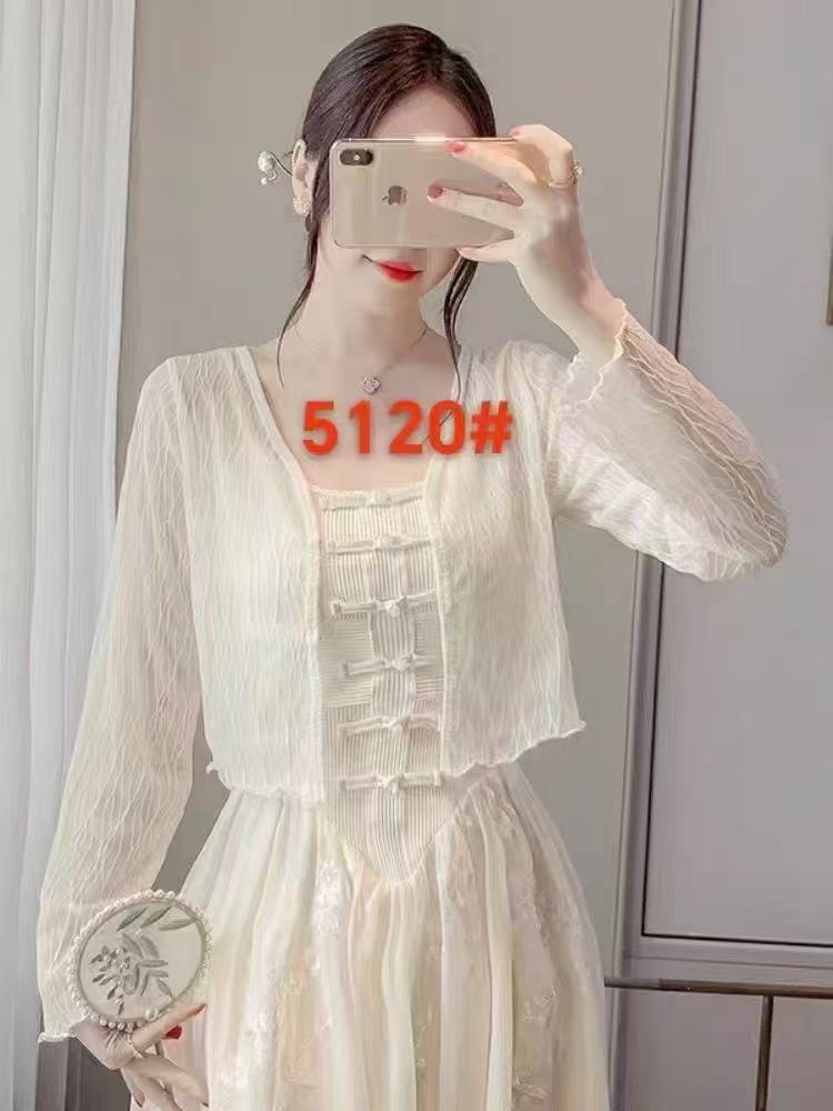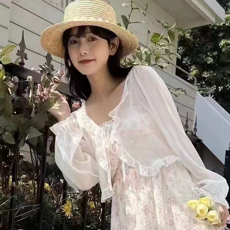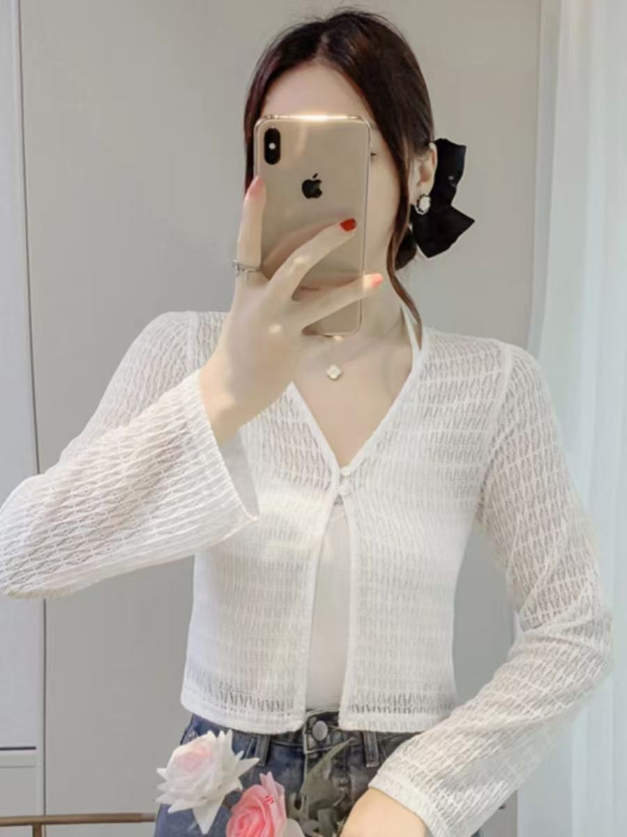 Платье миди в этническом стиле ретро, новинка на весну и лето, Повседневная вязаная крючком рубашка с длинными рукавами и пряжкой, женский топ с солнцезащитным кремом