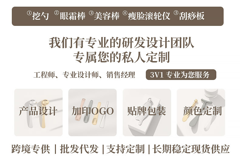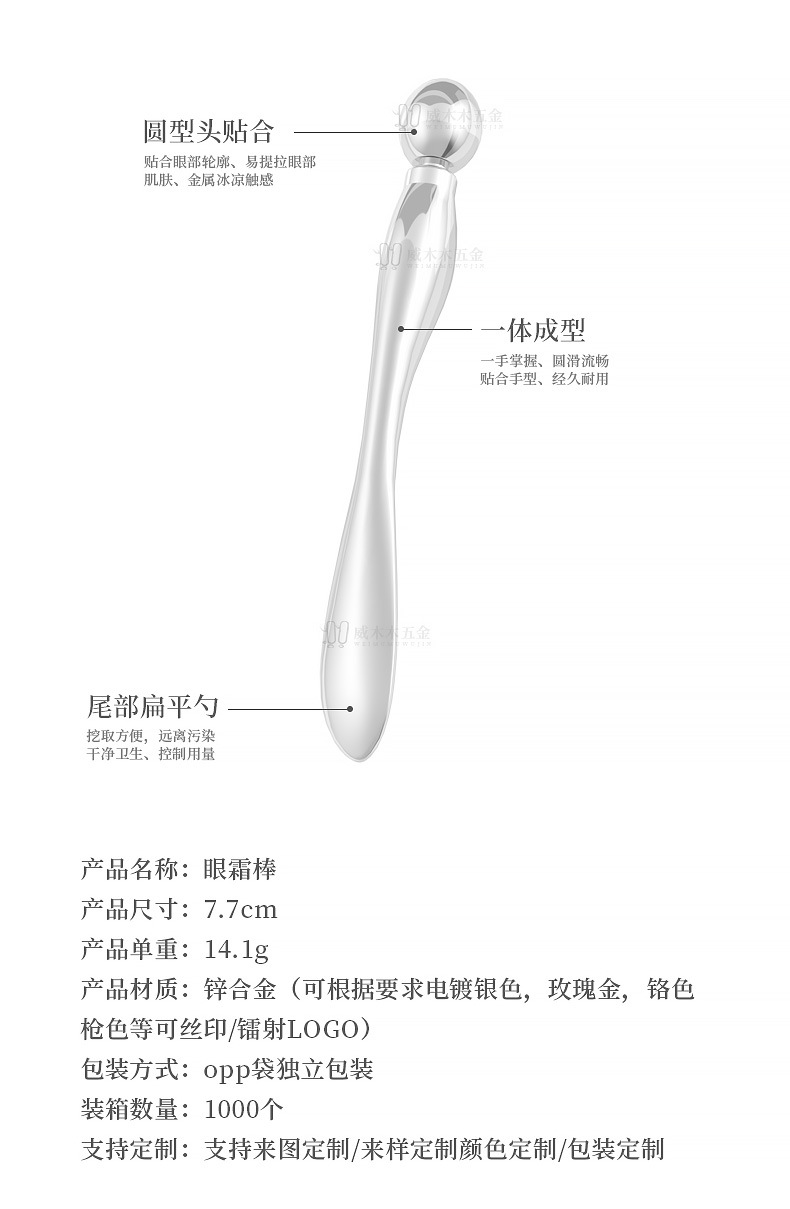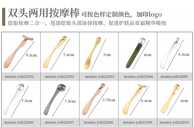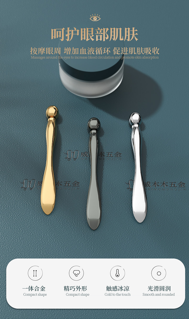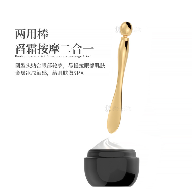 77 мм металлическая палочка для крема для глаз с двойной головкой двойного назначения, импортная палочка для глаз, косметическая ложка, массажная палочка с золотым кремом для глаз