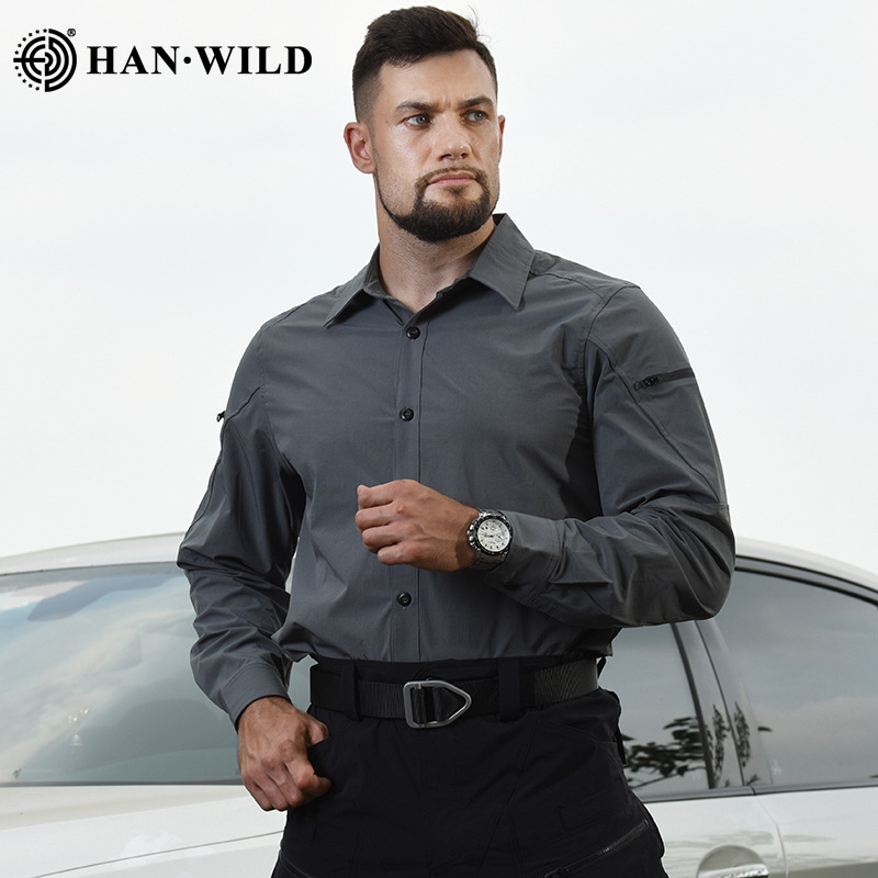 Тактическая рубашка Hanye для активного отдыха и альпинизма, быстросохнущая, для города и поездок, дышащая ветровка, повседневная деловая приталенная рубашка