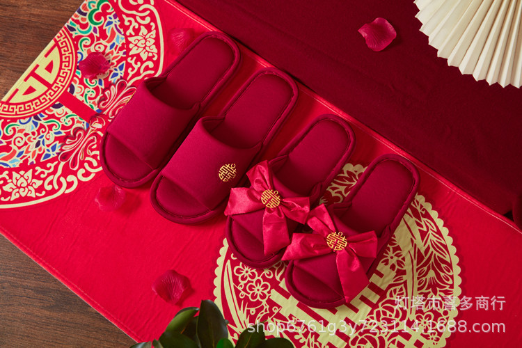 Оптовая продажа жениха и невесты свадьба праздничный персонаж домашние Нескользящие тапочки год жизни пары Красная свадьба для мужчин и женщин