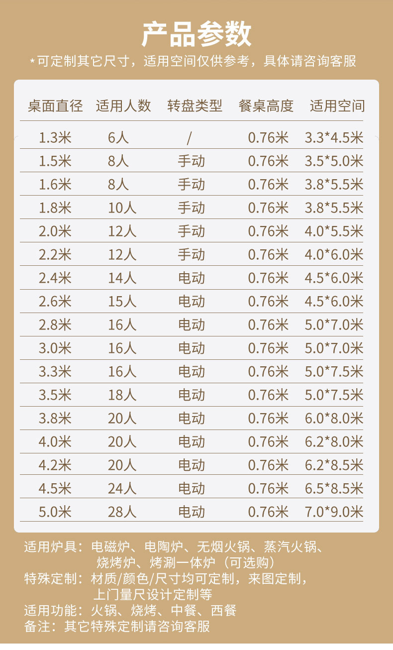 Круглый стол 1.3m (6 человек) без стульев-печей, по индивидуальному заказу.; Размер круглого стола можно настроить для 6-28 человек.; Размер круглого стола можно персонализировать1,3- 5m