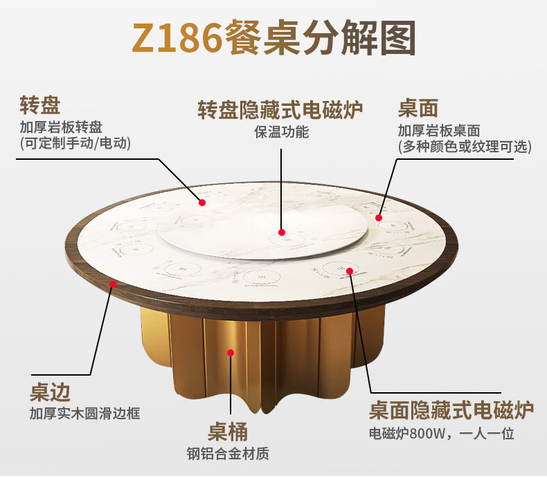 Австралийский бренд Z186 каменная плита индукционная плита круглый стол 16 человек отель клуб Ресторан один человек электрический горячий горшок стол