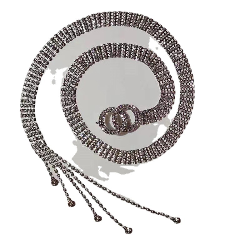 Европейский и американский трансграничный женский пояс со стразами, Блестящий Модный женский пояс с круглым кольцом и кристаллами, джинсовая поясная цепочка