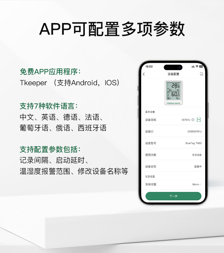 Термогигрометр Freshland Bluetooth Smart для складов и лабораторий, высокоточный термометр Blue Tag TH20
