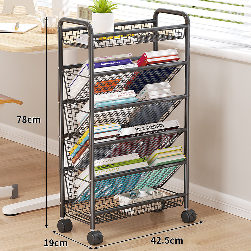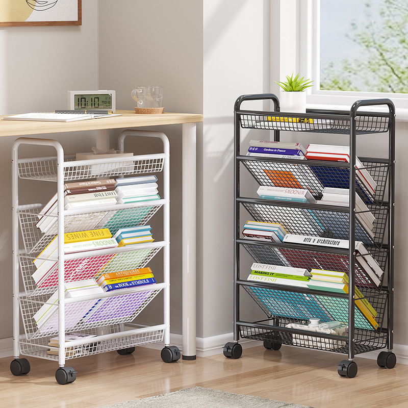 Подвижная книжная полка Стеллаж для хранения чтения Бытовая тележка с колесами Напольный простой книжный шкаф для общежития