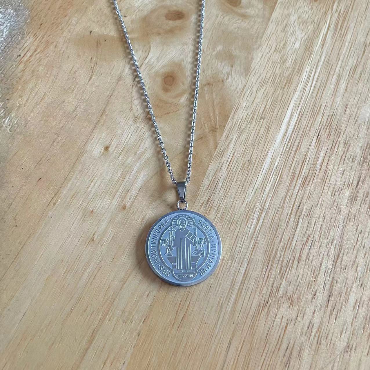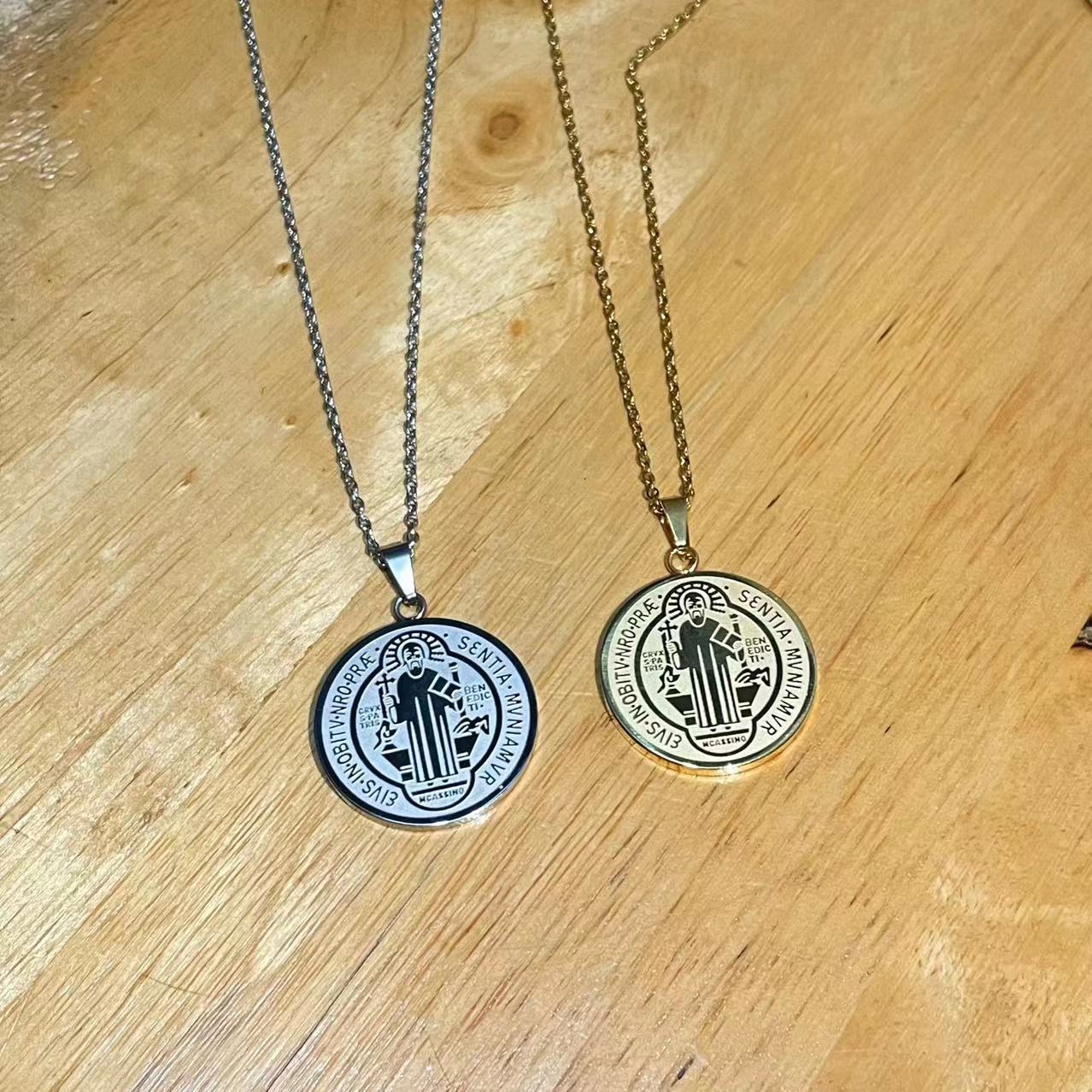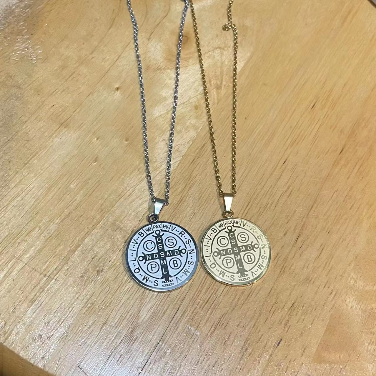 Трансграничное ожерелье из нержавеющей стали Медаль за крест Сан-Бени Простая универсальная мужская двусторонняя Подвеска из коррозионной титановой стали в наличии