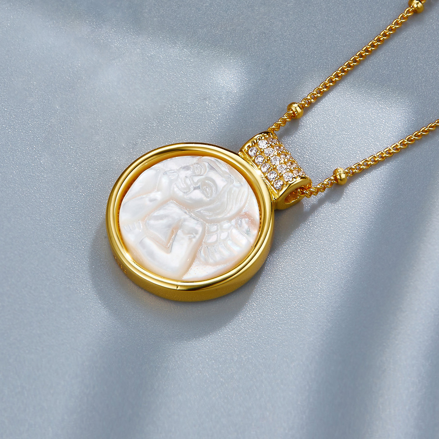 Полное тело 925 Серебряное резное белое ожерелье-рябчик Универсальный кулон Ракушка Нишевый дизайн Чувство Трансграничное легкое ожерелье в роскошном стиле