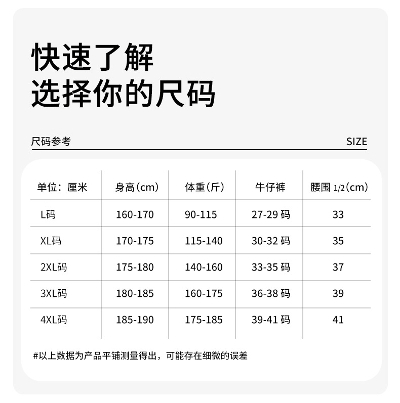 L【Рекомендуется 45-55kg 】; XL [рекомендуется 55-65kg ]; 2XL [рекомендуется 65-75kg ]; 3XL [рекомендуется 75-85kg ]; 4XL [рекомендуется 85-95kg ]