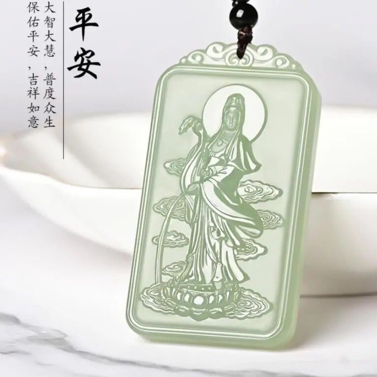 Фабрика Оптовая натуральный белый нефрит Guanyin Кулон Мужской амулет Guanyin Bodhisattva нефрит кулон