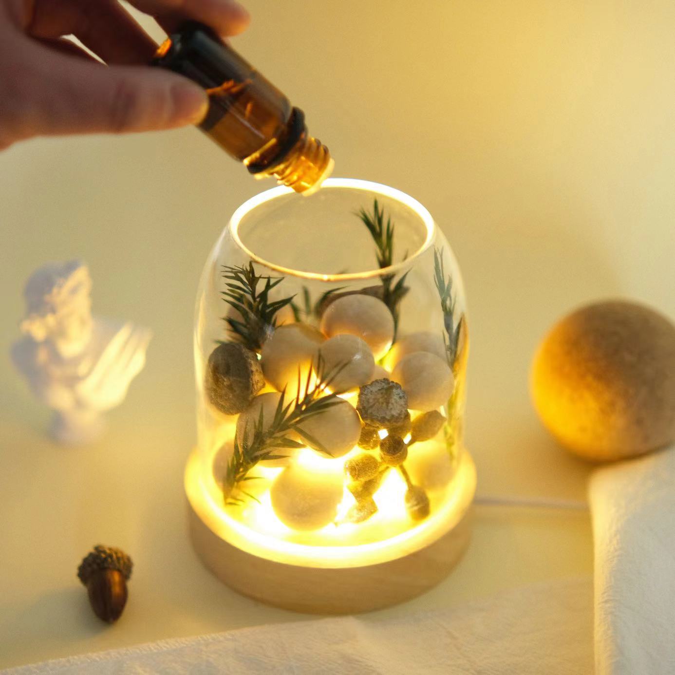 Набор для создания ароматерапевтического ночника без пламени своими руками: подарок для дома с эфирными маслами, сухоцветами, материалами для рукоделия, диффузором.