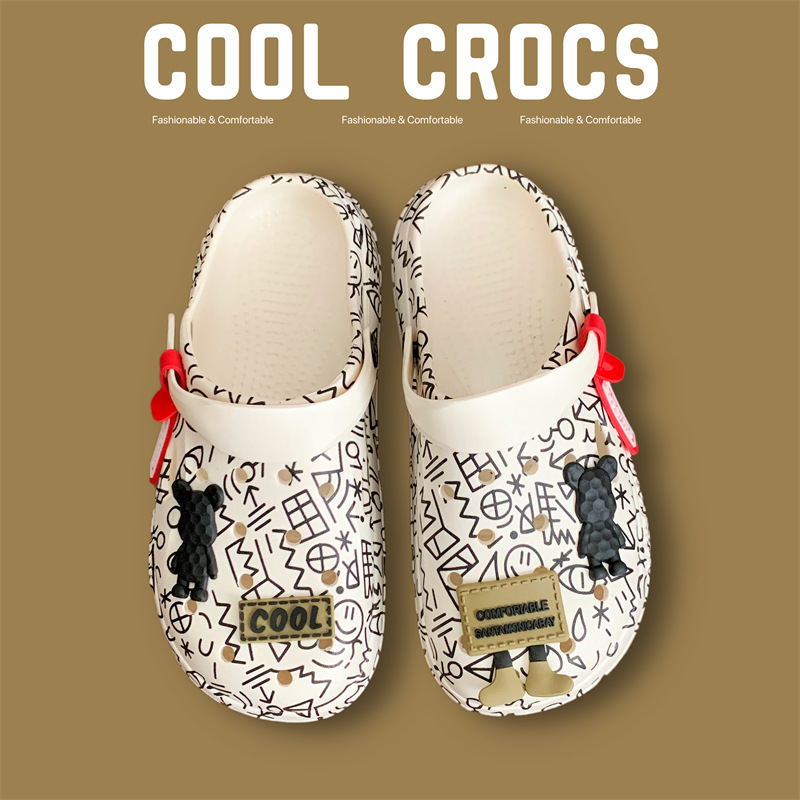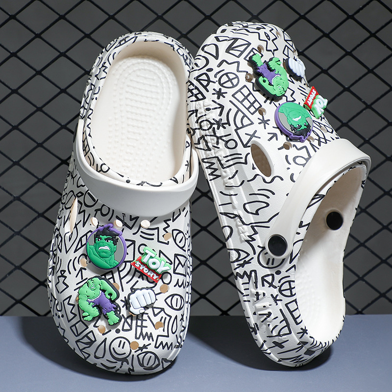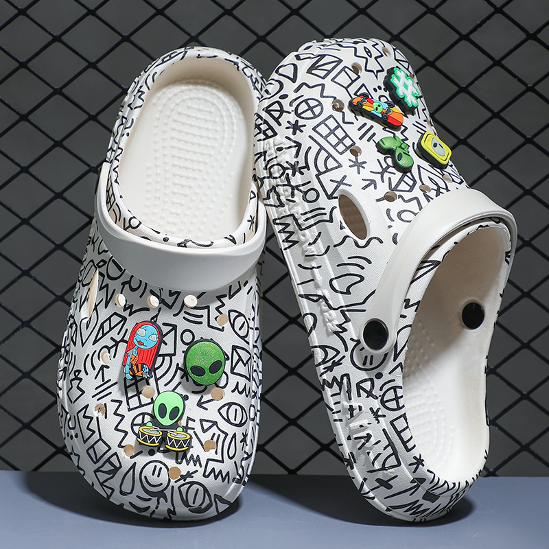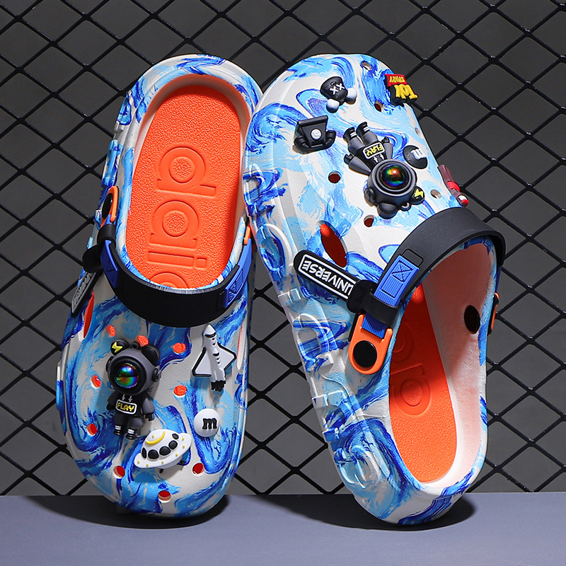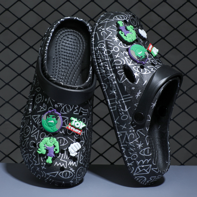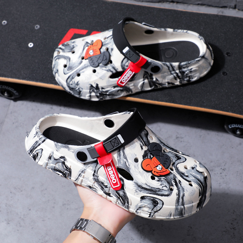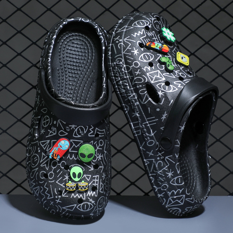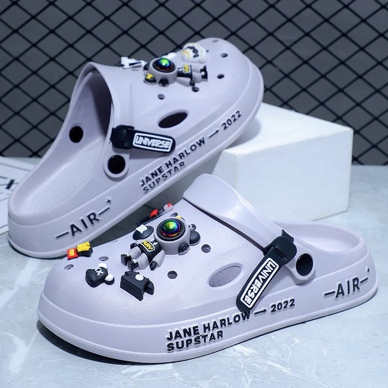 Мужские сандалии-кроксы 2025: Новые летние тапочки с закрытым носком, очень толстая подошва, нескользящие, повседневные, с мягкой подошвой, для пляжа