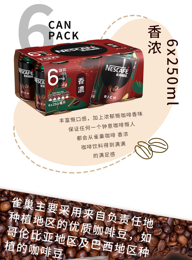 Гонконг Nescafe зяблик ароматный и гладкий континентальный жареное молоко ароматный офис с черным кофейным напитком консервированный 250 мл