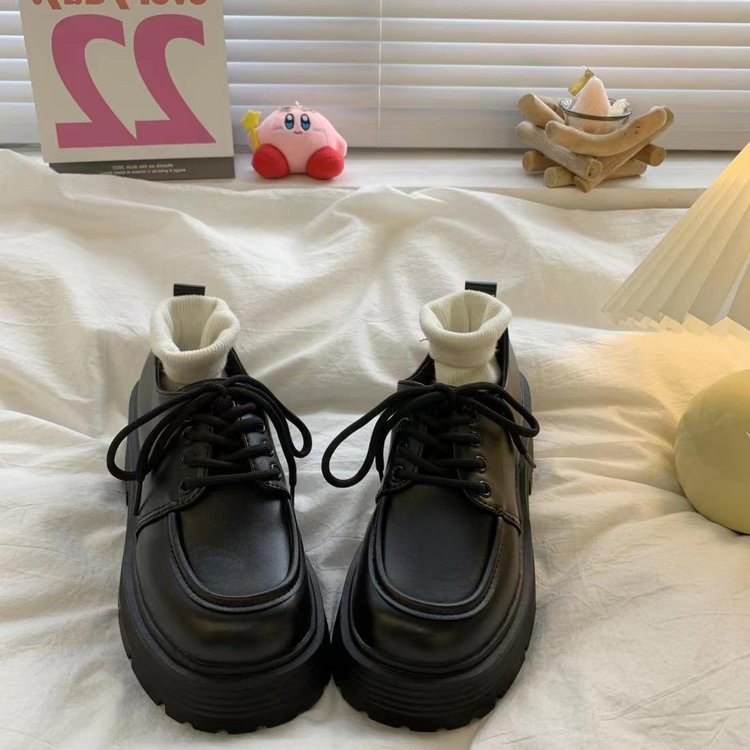 Женские лоферы из мягкой кожи на толстой подошве, новинка 2024, маленькие кожаные туфли на платформе со шнуровкой jk в консервативном стиле в британском стиле для женщин
