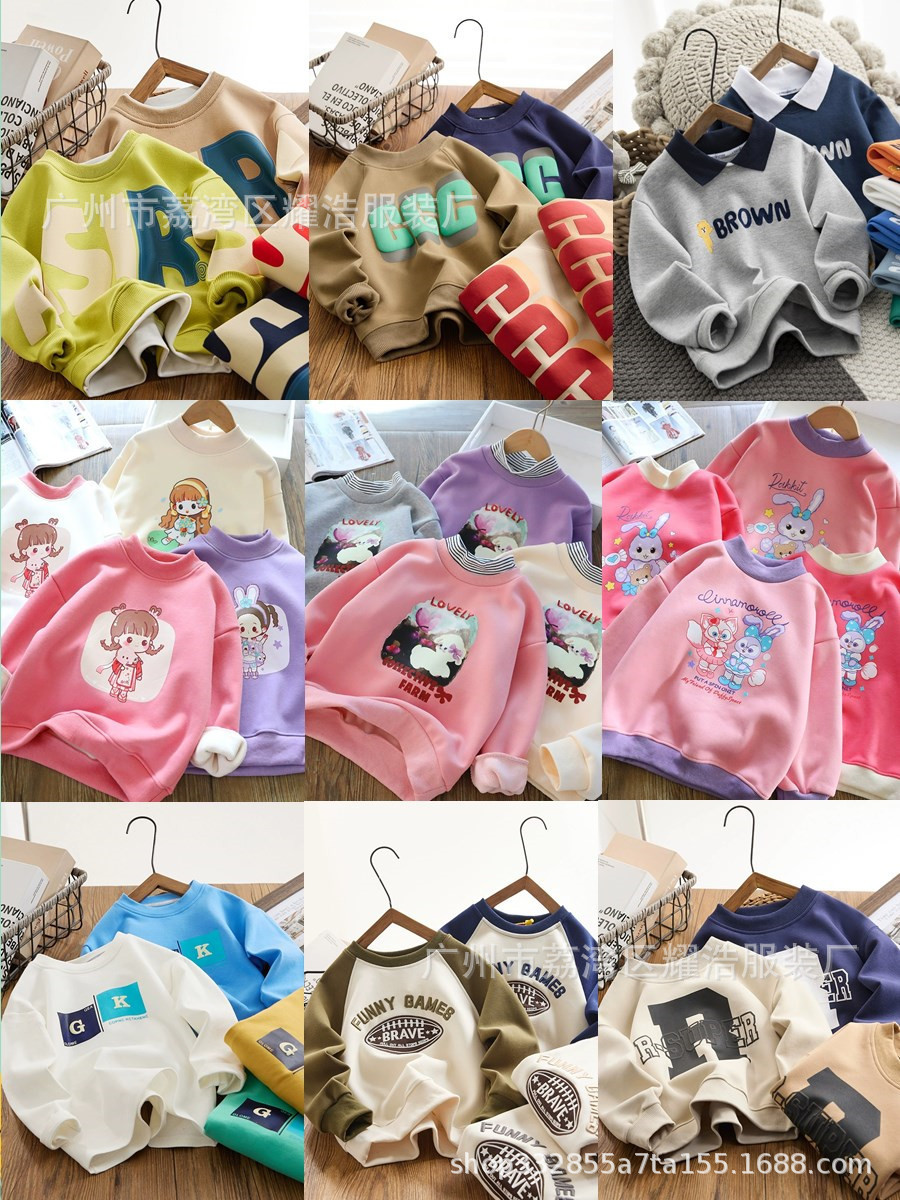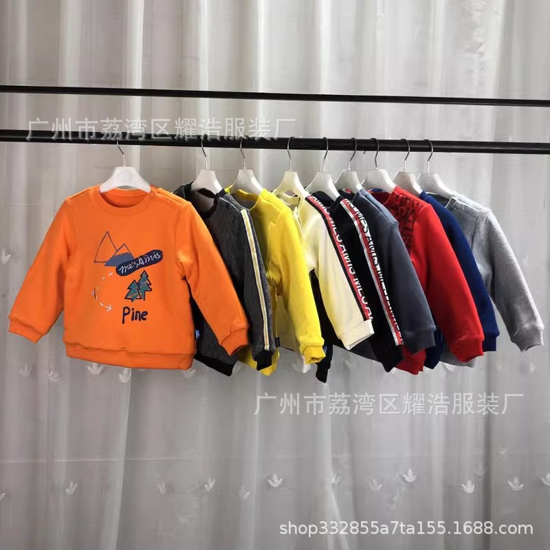 5 юаней оптовая продажа с фабрики, осенне-зимняя корейская детская одежда на флисовой подкладке с круглым вырезом, детская одежда, Распродажа одежды