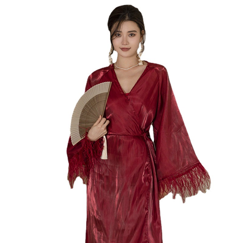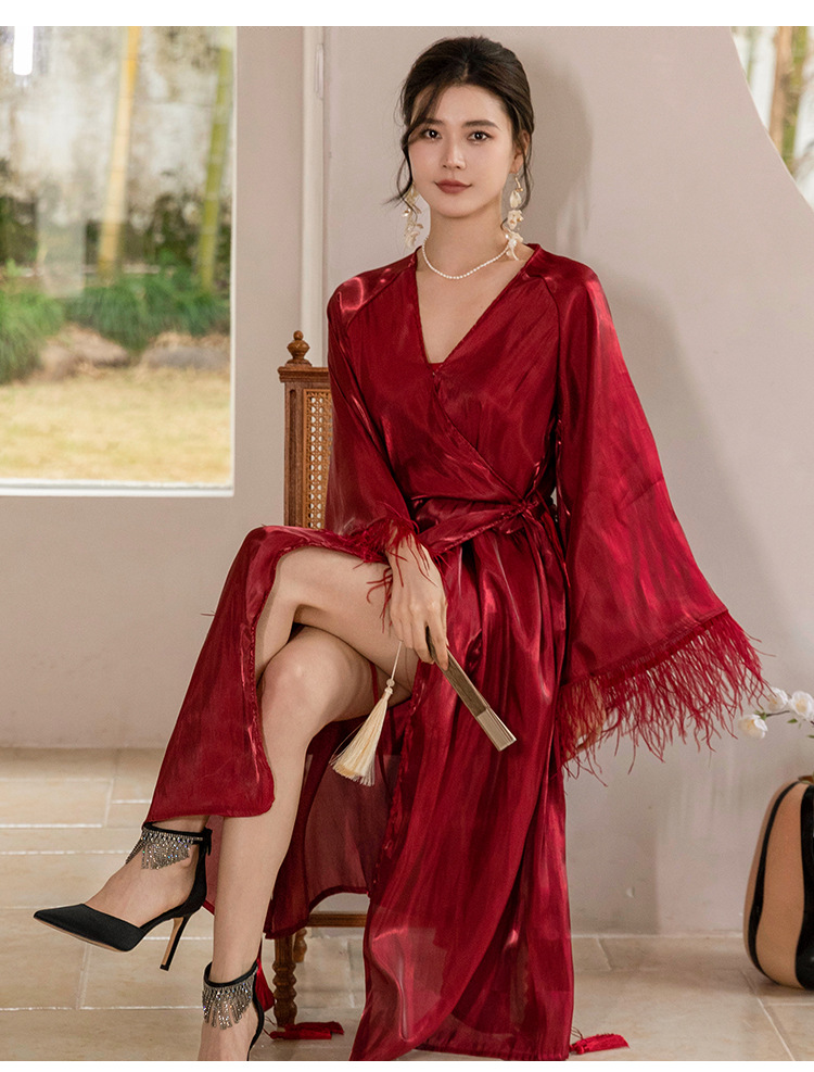 Фея утреннее платье Женская Невеста Сексуальная ночная рубашка Свадебная Пижама Перо Халат Премиум Sense Французское утреннее платье подружки невесты Фея