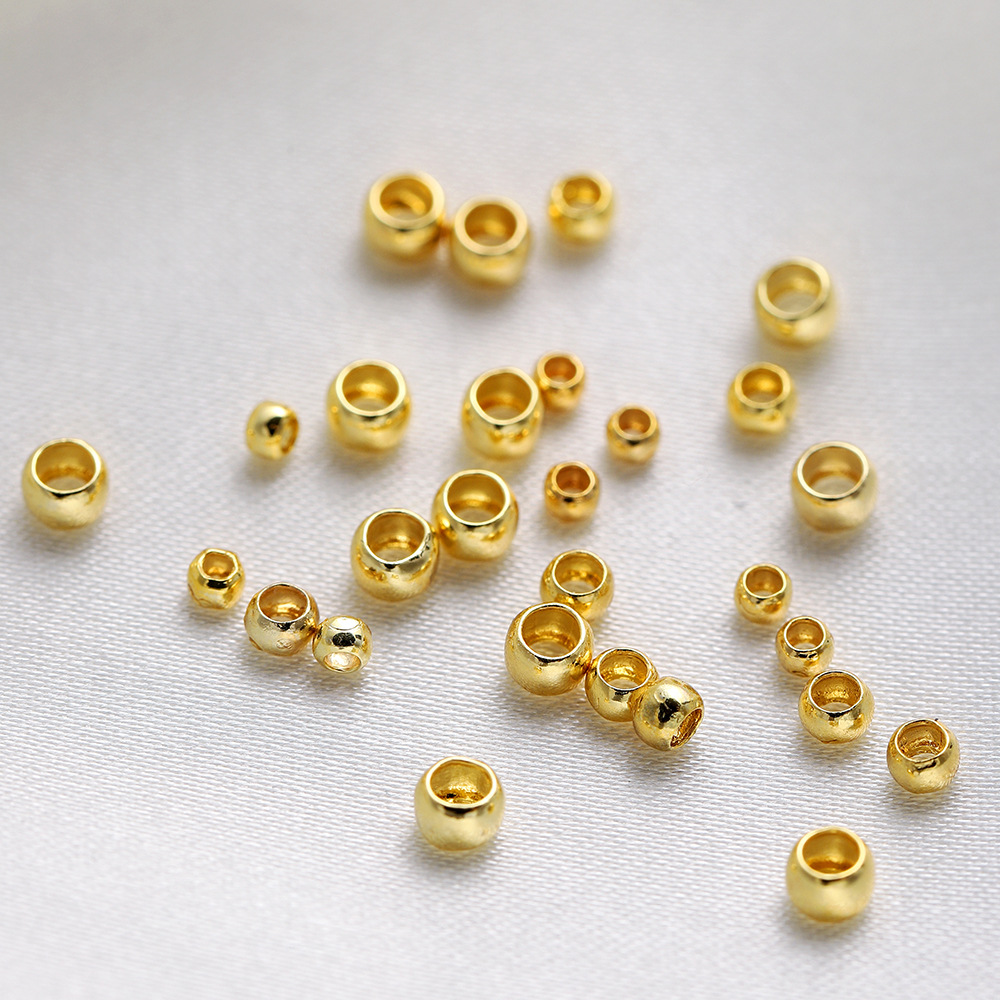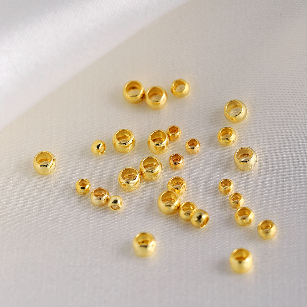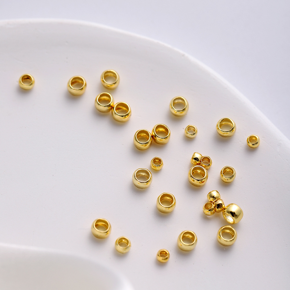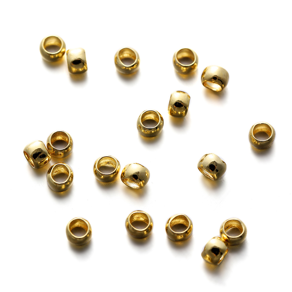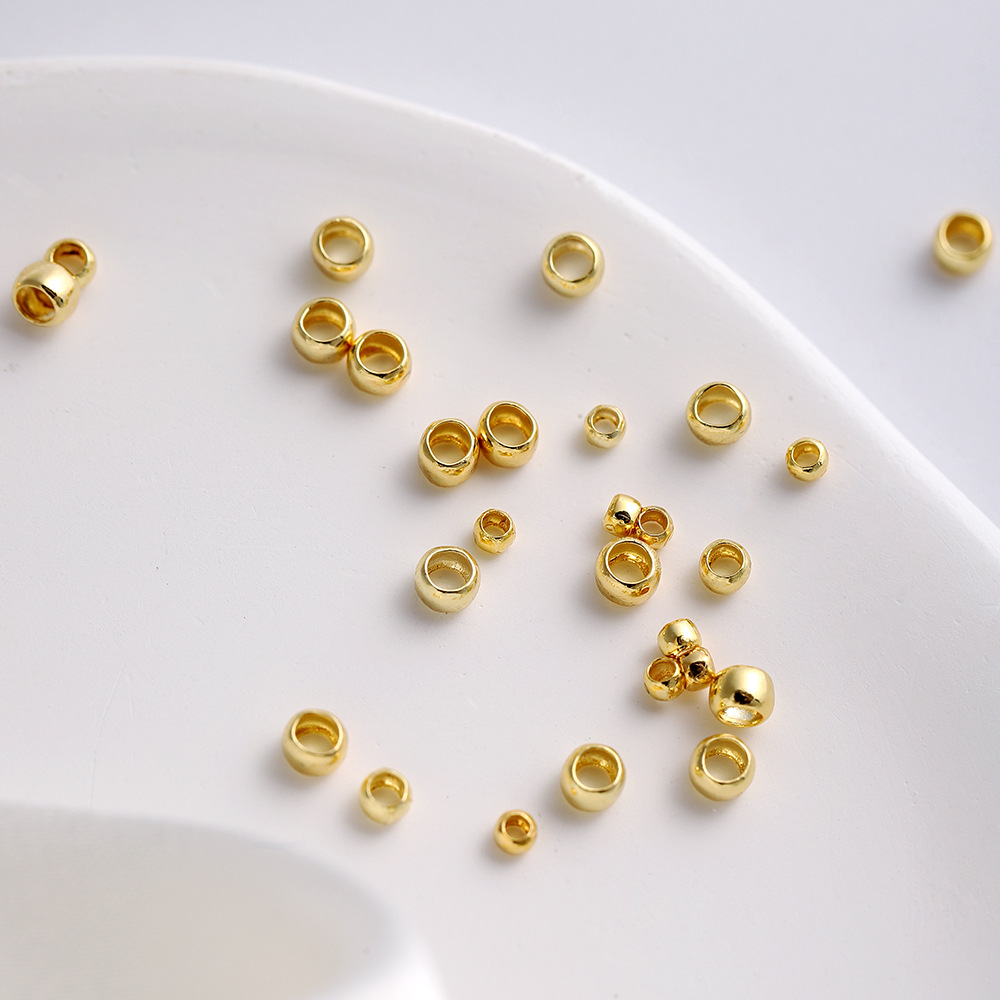Позолоченные 18-каратным золотом медные бусины с защитой цвета, позиционирующие бусины, медные бусины для рукоделия, аксессуары для изготовления украшений, маленькие золотые бусины, клипсы, плоские бусины для прессования, концевые бусины