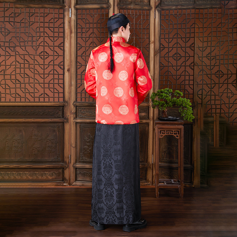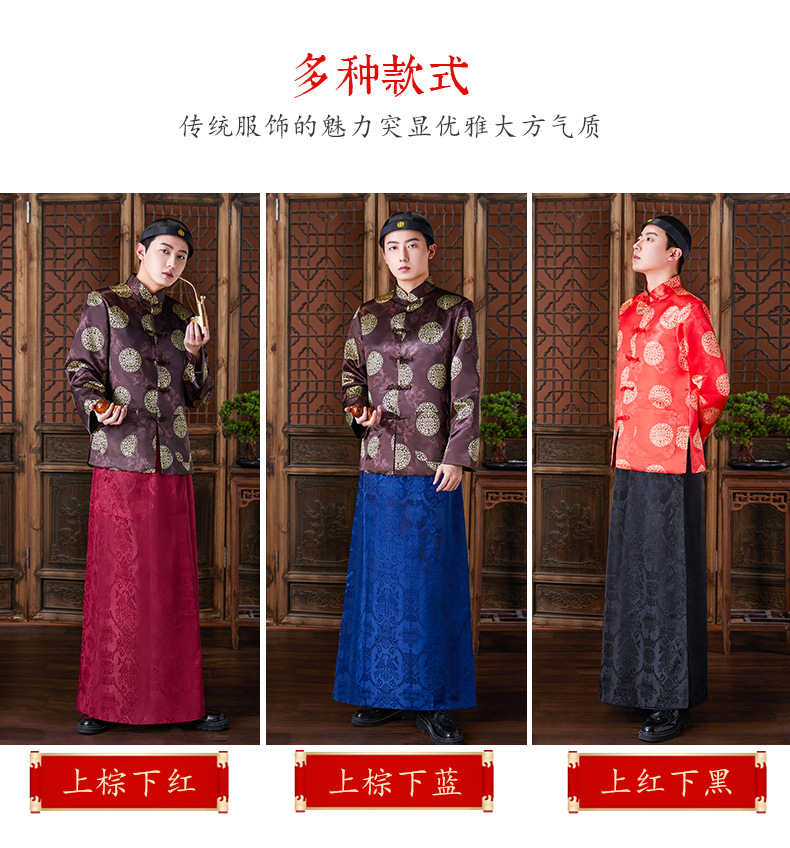 Костюм Тан для кино и телевидения Мужской Китайская Республика Шанхайская пляжная длинная рубашка Длинное платье Мандаринское пальто Мастер-лавочник Мастер-арендодатель Династия Цин Костюм для выступлений
