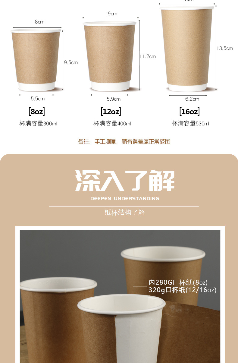 Двойная изоляция Крафт одноразовая молочная чашка Чашка Кофейная чашка на вынос Пакетированный стакан соевый молочный стакан 500 мл