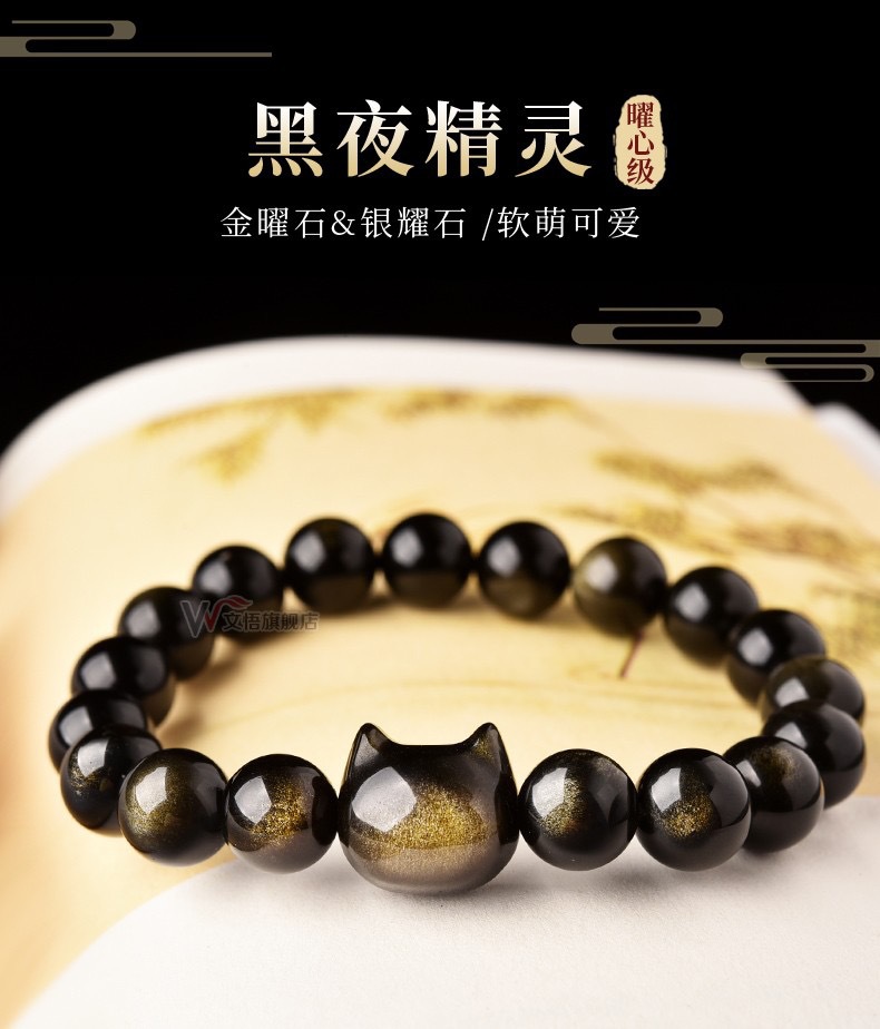 Браслет из натурального обсидиана для мужчин и женщин, золотой обсидиан, Серебряный обсидиан, голова кошки, парный браслет, креативный подарок на день рождения, подруге