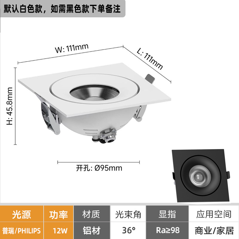 Ультратонкий встраиваемый светильник с полным спектром, регулируемым углом наклона и антибликовым покрытием для низких потолков, подходит для домашних гостиных и коммерческого освещения.