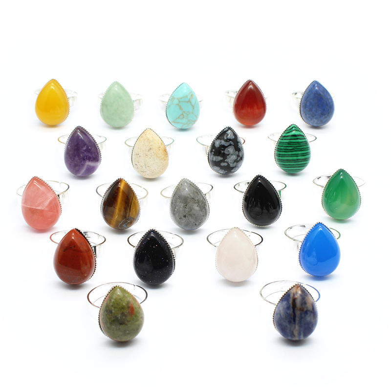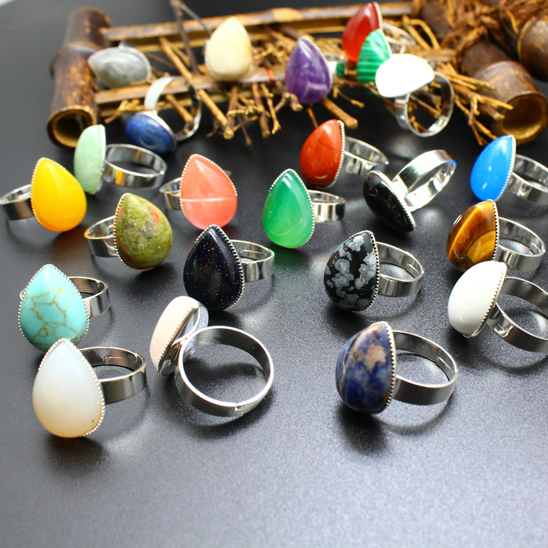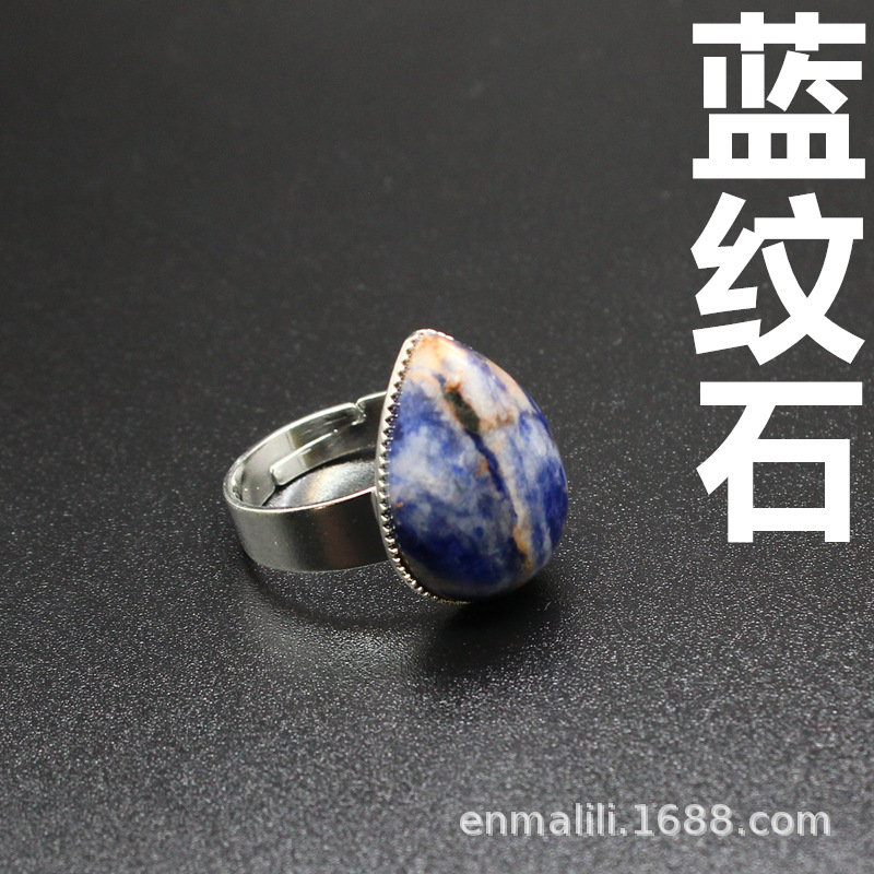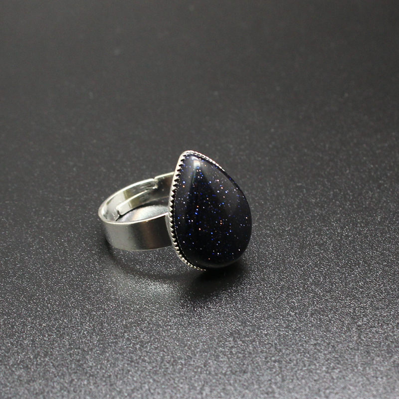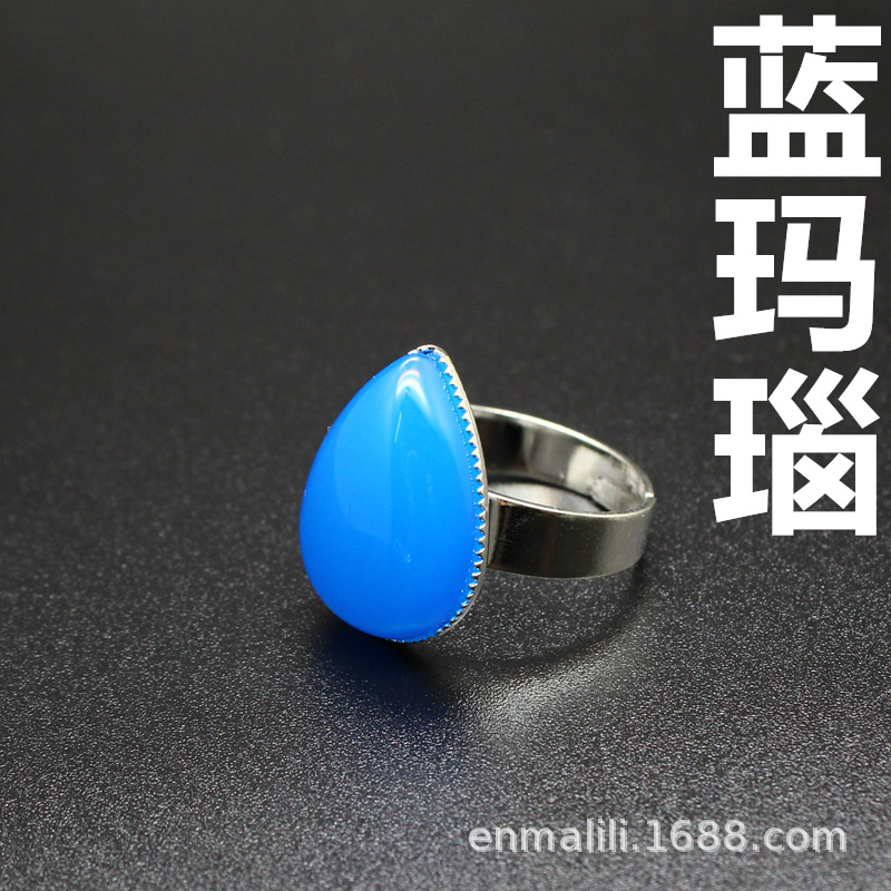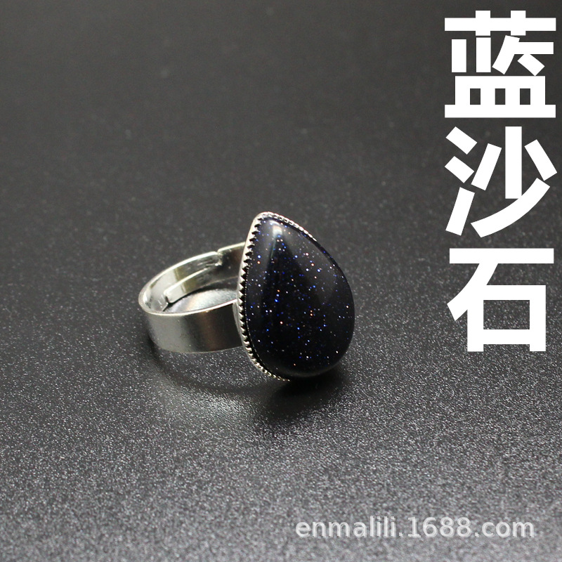 Внешняя торговля трансграничной Кристалл ювелирные изделия оптом натуральный камень простой капли воды синий агат кольцо