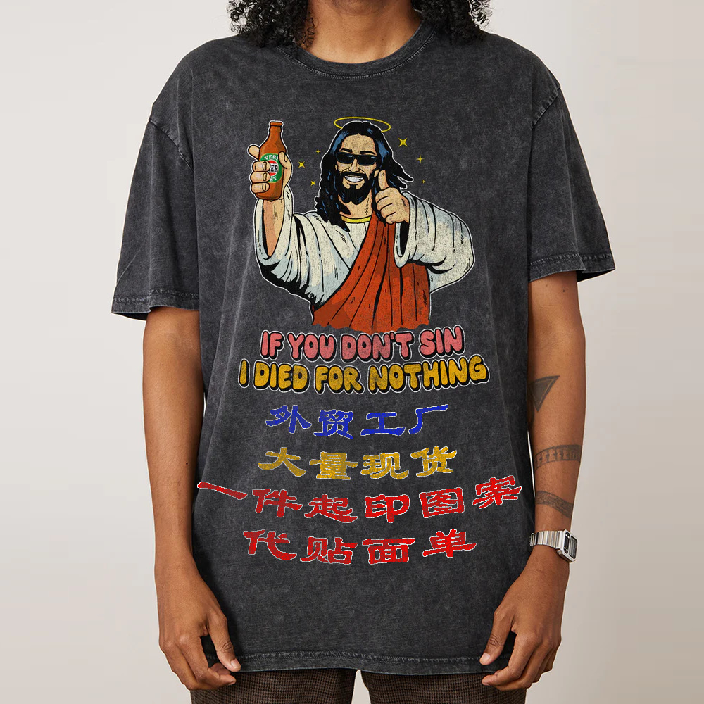 Американская потертая футболка с короткими рукавами, трансграничная жареная снежинка, модный бренд американского размера, популярная мужская и женская футболка Amazon с принтом логотипа
