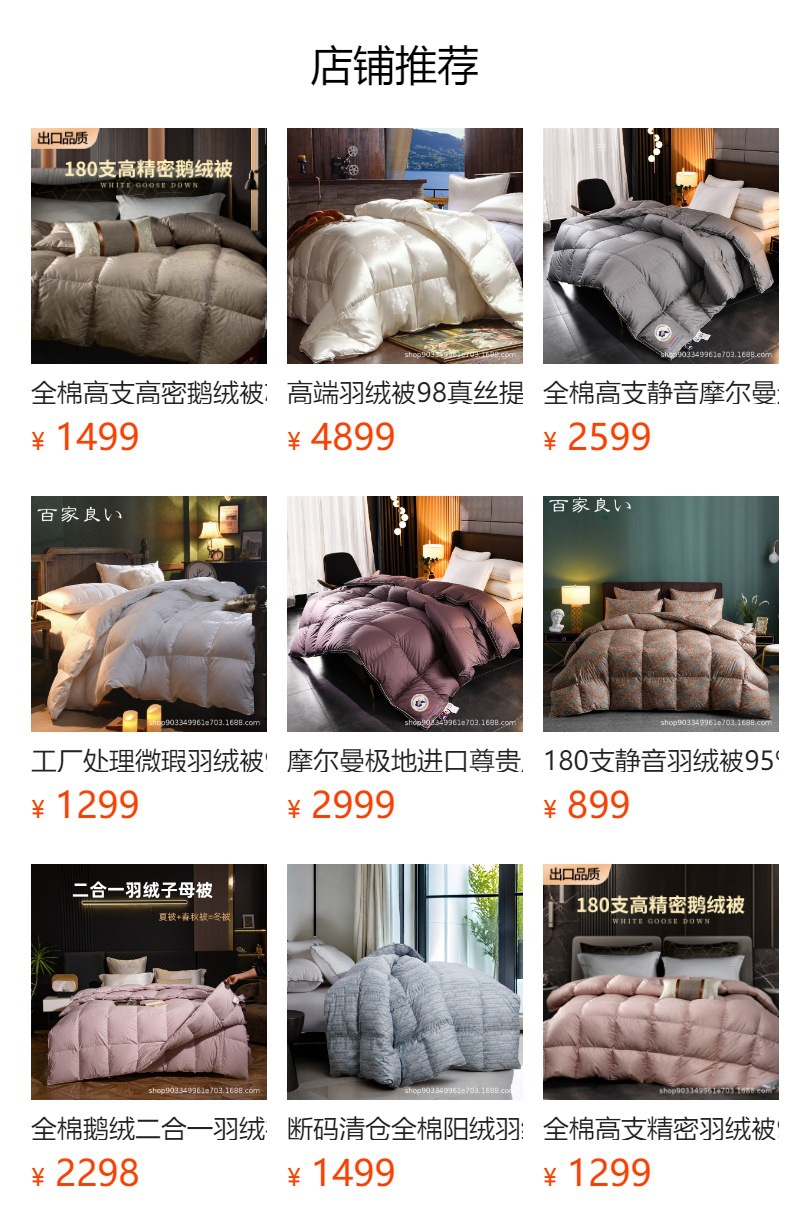 如果你想买真的鹅绒被,就不要拿我们的价格和几百元的去比。我们的产品是实实在在的价格,就是鹅绒成本加上被壳成本加上加工费用再加上合理的批发利润,良心产品,良心价格!
