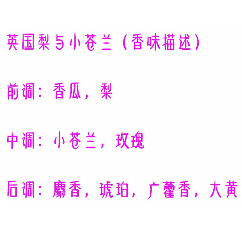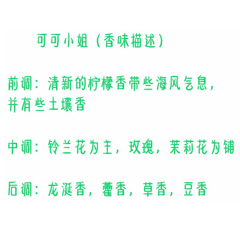 Розы; Османтуса; Жасмин; Синий колокольчик; -Увы.; Мисс Коко; Британская груша и фрезия; Шалфей с морской солью; Гулонг; Океан; Белый чай; Лилия; Правда, я.; Цветок гардении; Белый персиковый улун; Незабудка; Голубое небо; Хилтон; Шангри-Ла