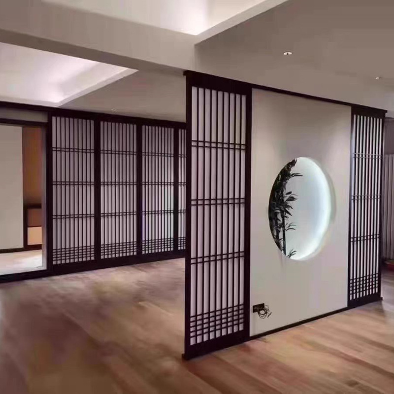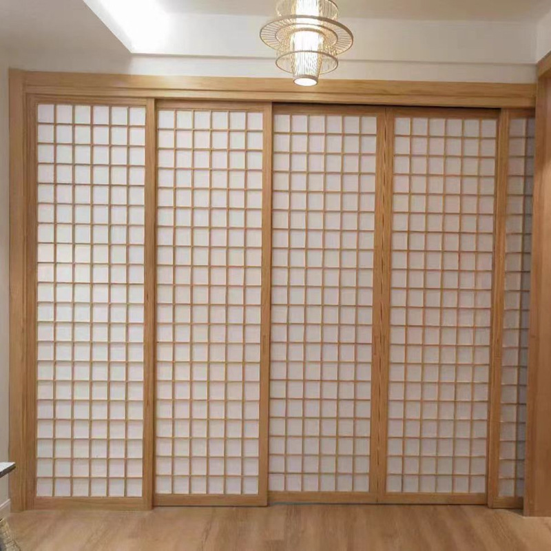 Дверь из бревенчатой сетки в японском стиле Индивидуальная раздвижная дверь из цельного дерева в семье Магазин японских материалов Тихая раздвижная дверь Combartion Partition