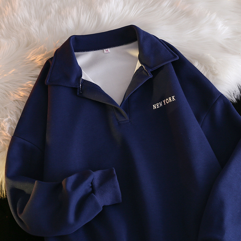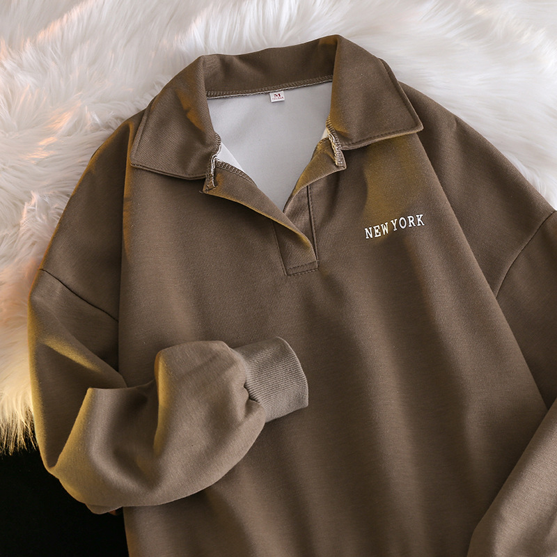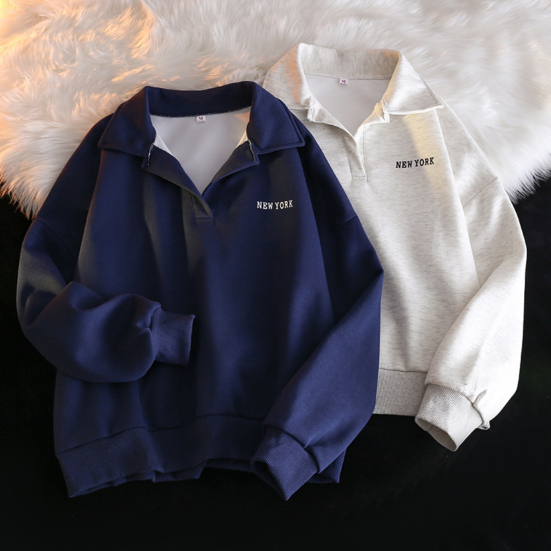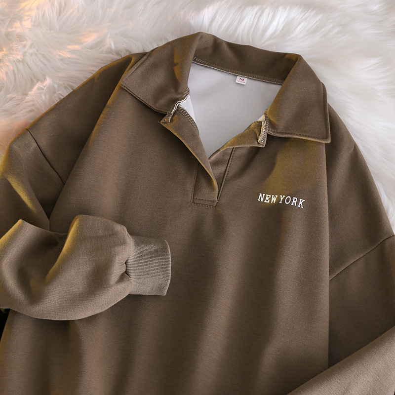 Трансграничный свитер с воротником поло, Женский весенне-осенний тонкий свободный новый модный бренд в Корейском стиле, шикарный топ в гонконгском стиле, куртка с длинным рукавом