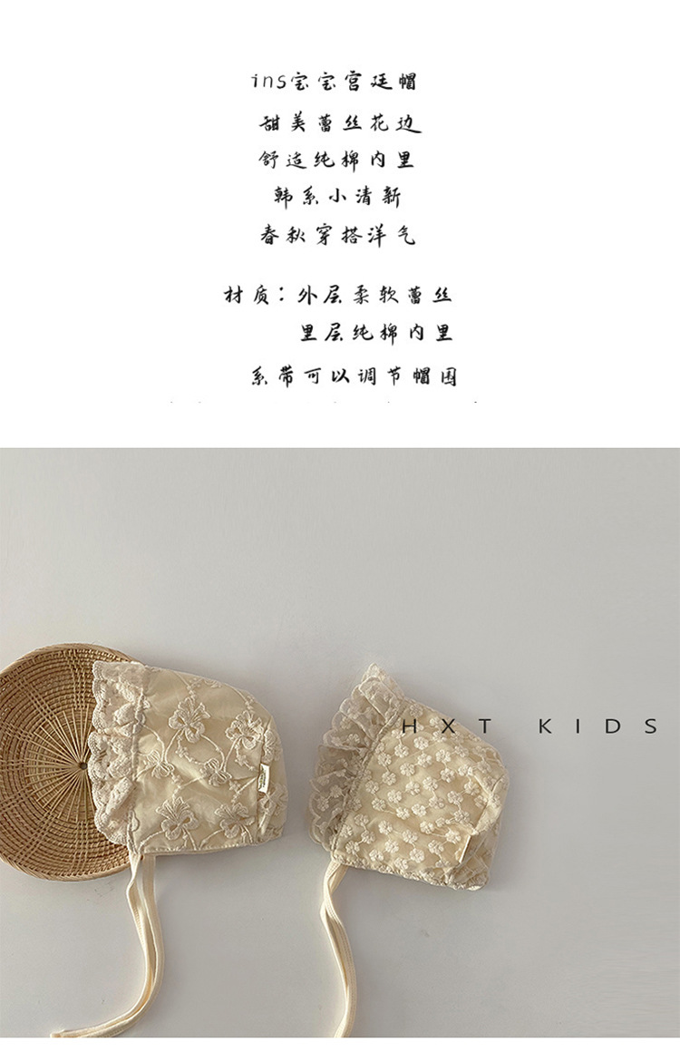 Детская шапка Весна и осень 2022 Новая стильная кружевная придворная шапка для девочки Детская кружевная шапка Модная