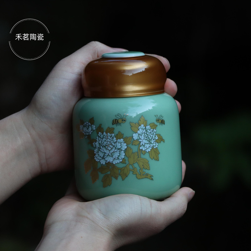 Попробуйте Yi Mei Zi Зеленая яшма Цвет Керамические чайные банки Пищевая герметизирующая паста Квадратные банки Жидкая порошкообразная паста Все можно упаковать